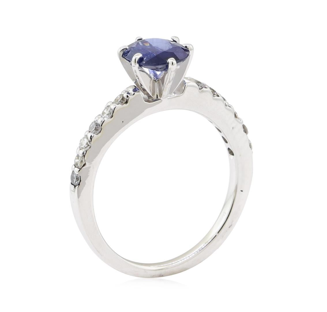 One ring featuring: 14KT white gold weighing 2.5 grams containing one oval sapphire weighing 1.00 ct and diamonds weighing 0.25ctw.