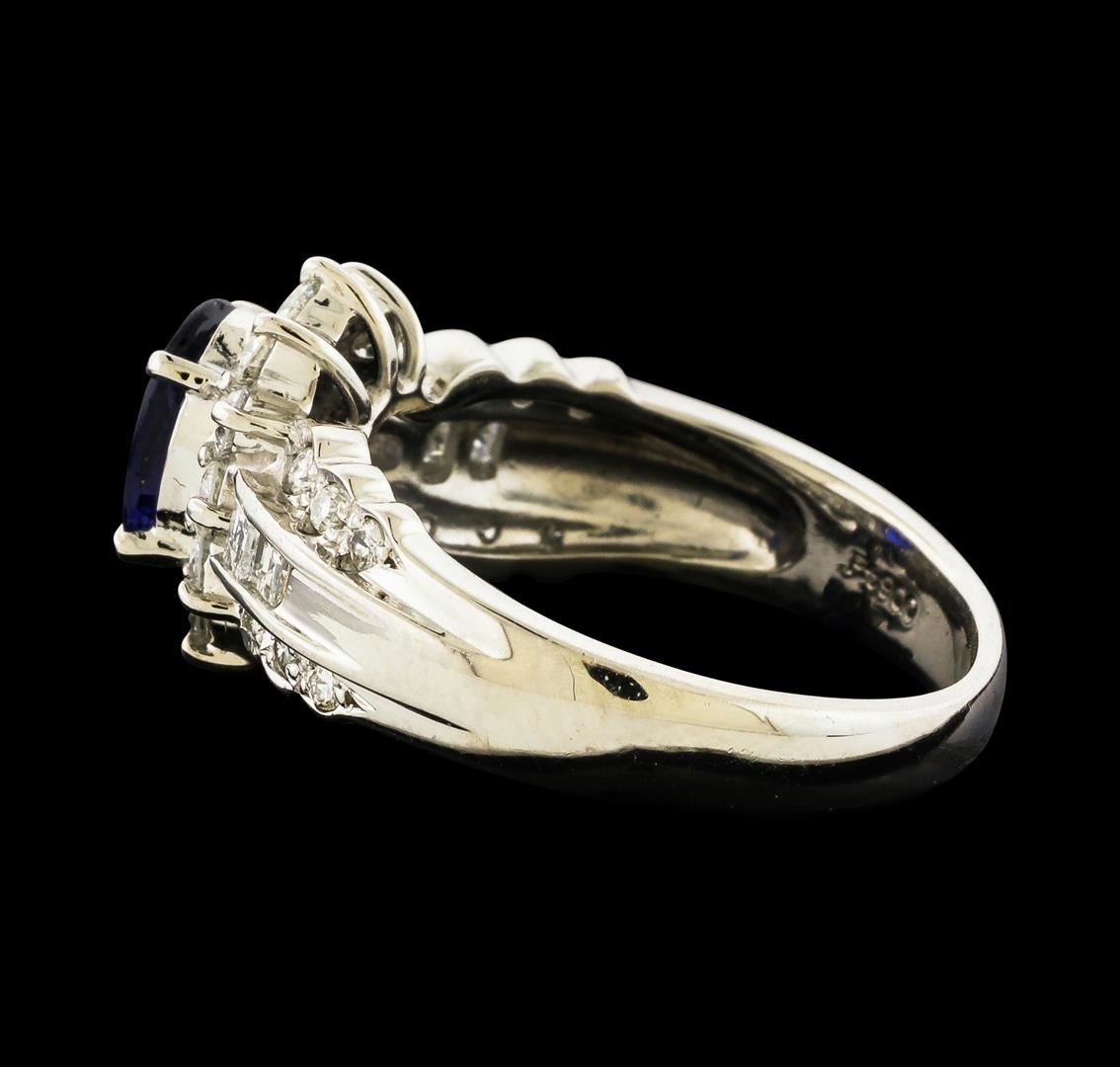 One ring featuring: Platinum containing Sapphire with a total weight of 1.25ct and Diamonds with a total weight of 0.67ct. Total Weight of Ring: 8.1 grams.