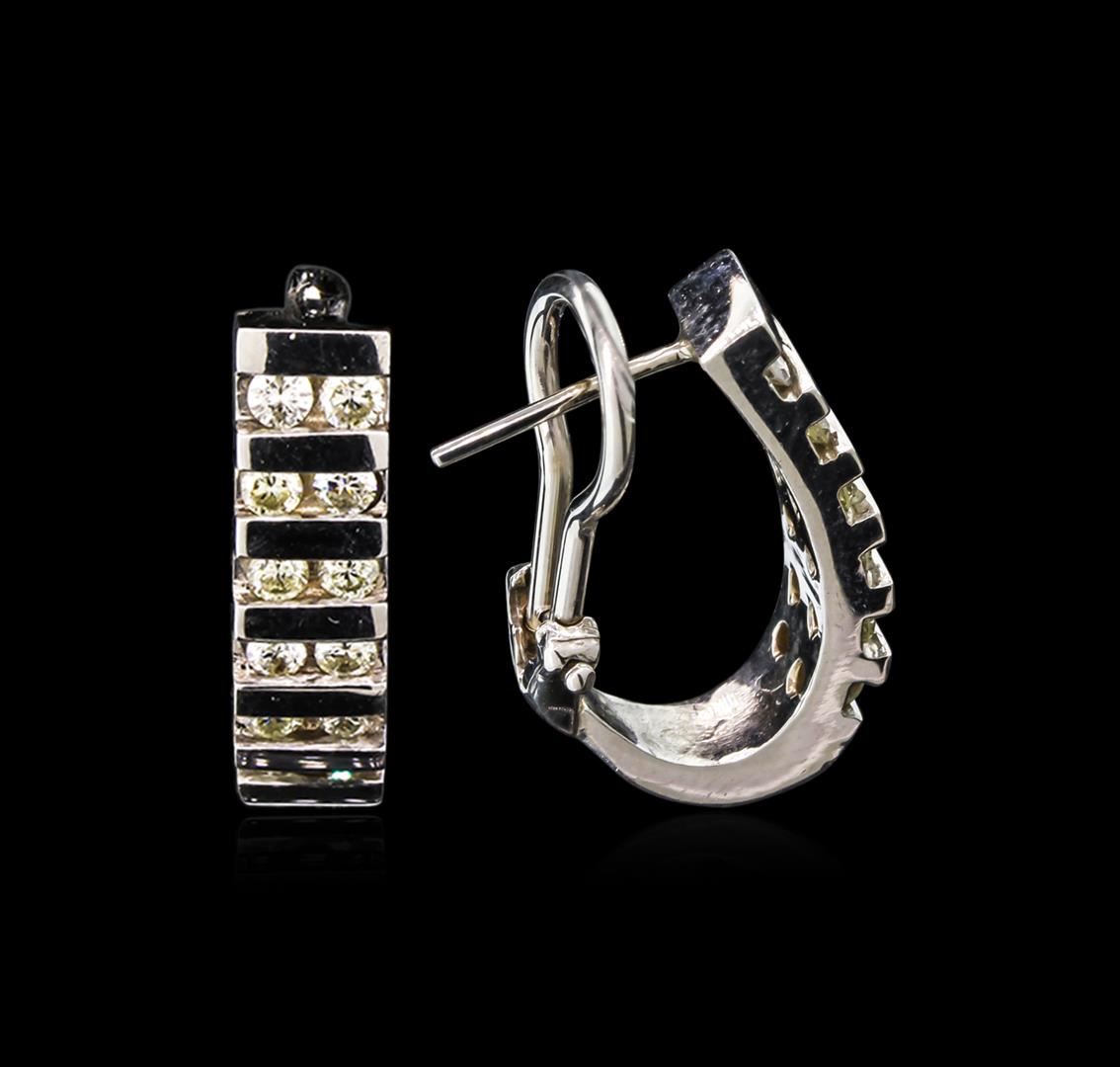 One pair of earrings featuring: 14KT white gold weighing 8.78 grams containing diamonds with a total weight of 1.25ct.