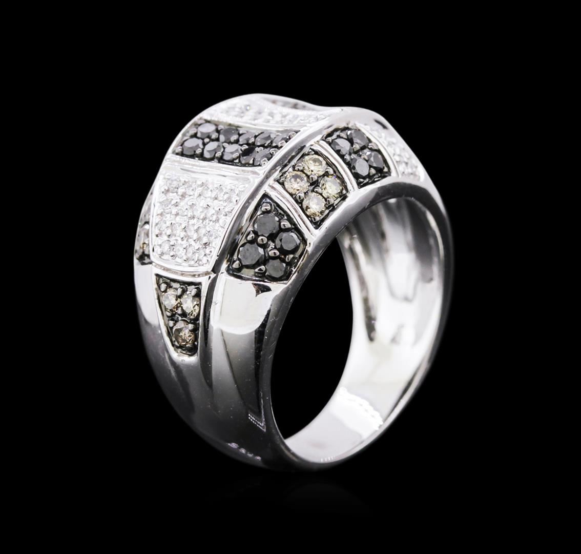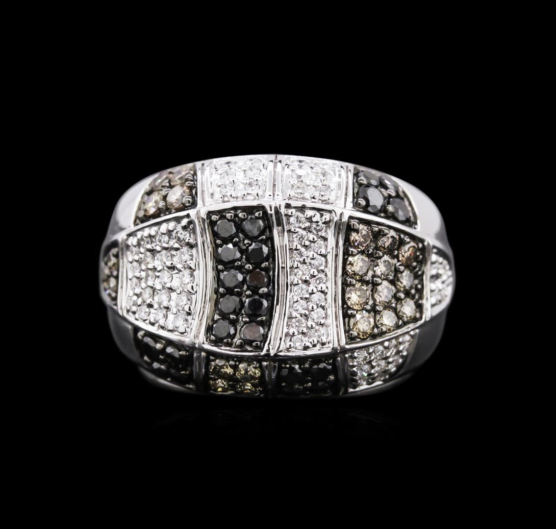 One ring featuring: 14KT white gold weighing 6.50 grams containing white, black, and brown diamonds with a total weight of 1.25ct.