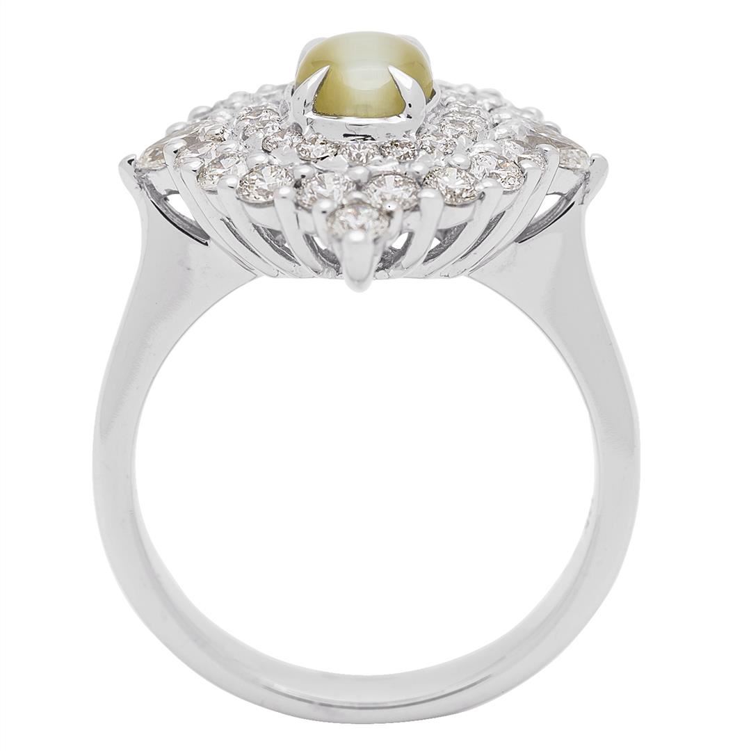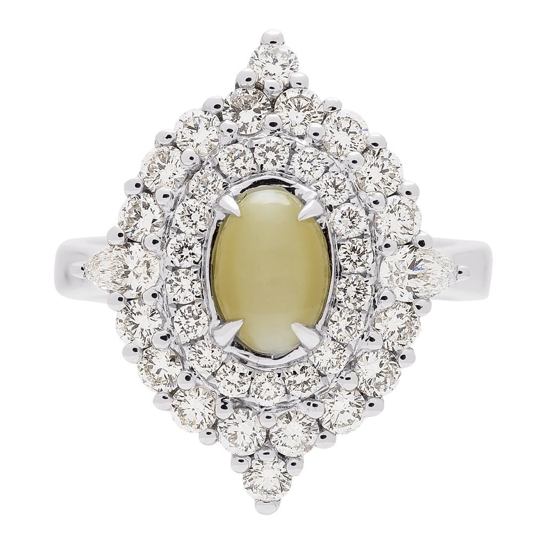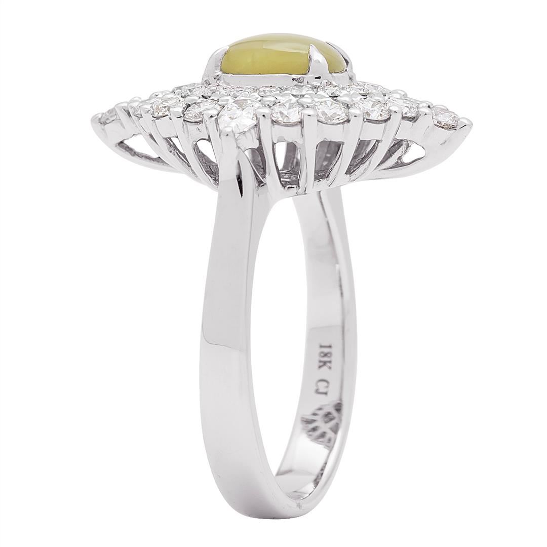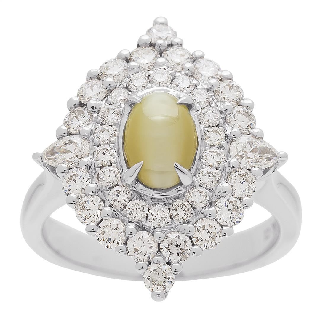 One lady's ring featuring: 18KT white gold weighing 6.75 grams containing one cat's eye weighing 1.26ct and diamonds weighing 1.10ctw.