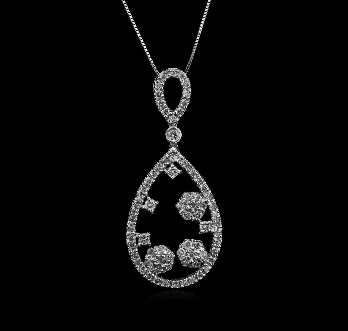 One pendant with chain featuring: 14KT white gold weighing 6.90 grams containing diamonds with a total weight of 1.26ct.