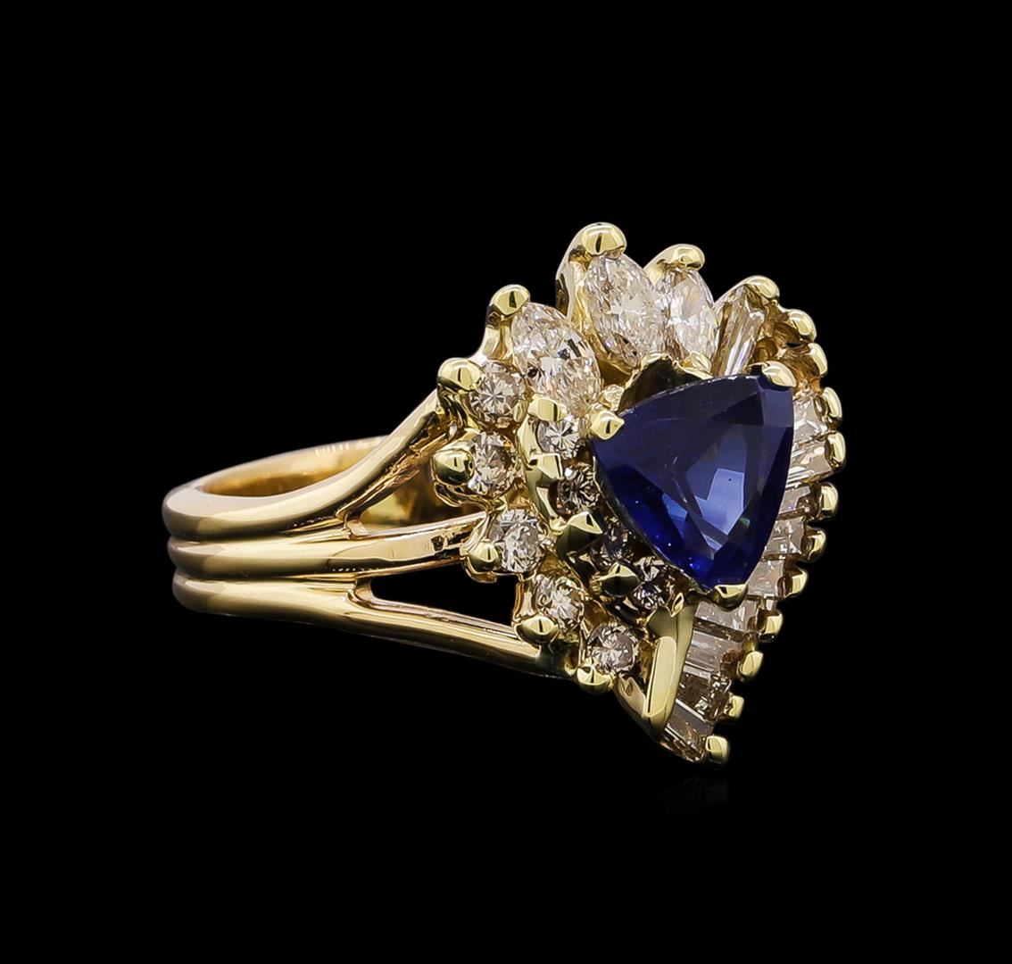 One ring : 14KT yellow gold weighing 5.95gm containing one sapphire with a total weight of 1.26ct and diamonds weighing 1.00ctw.