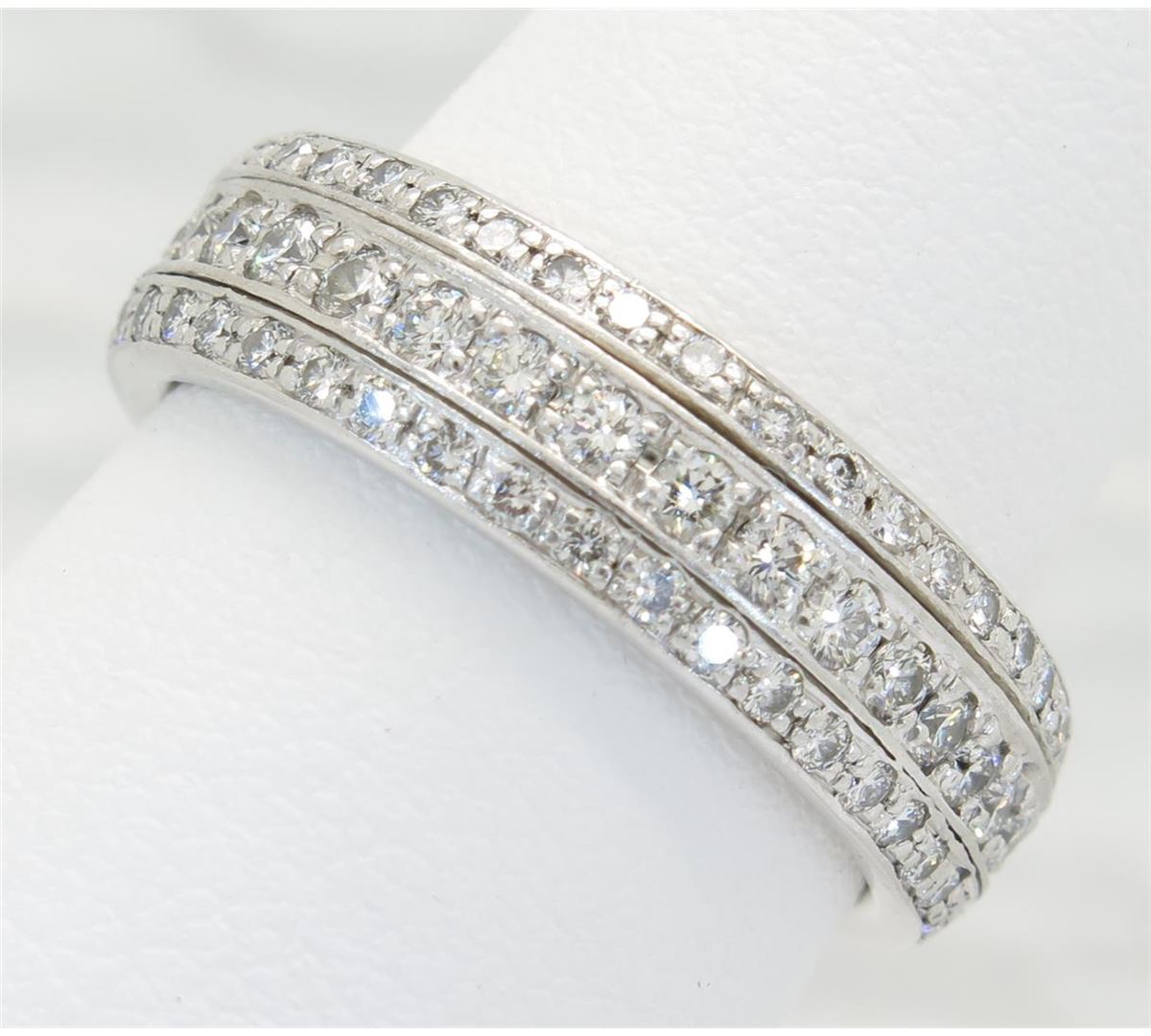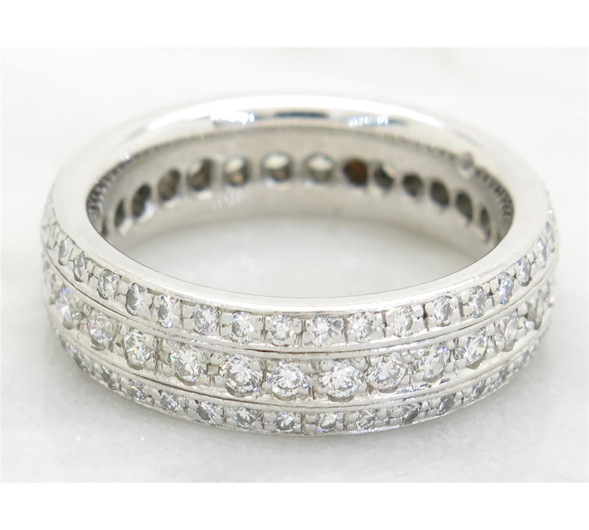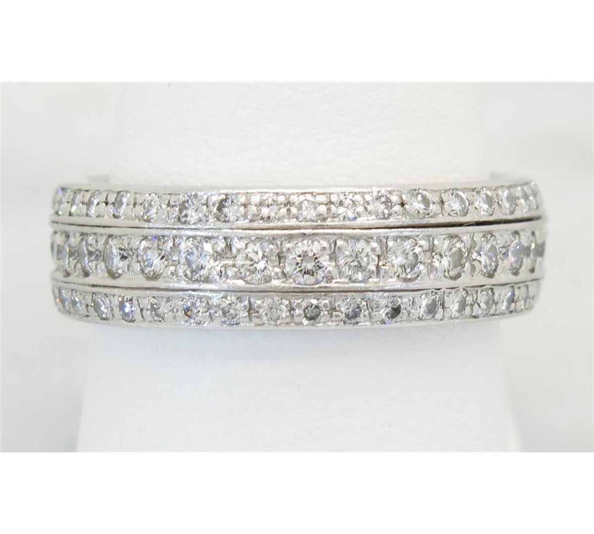 One tested platinum diamond ring. Containing: 113 Round Brilliant Cut Diamonds. Clarity: VS-SI, Color: F-H. Approximate total diamond weight: 1.26CTW. All diamonds are graded in the mounting unless otherwise stated. Weight of ring: 10.2 grams, Size: 6.0.