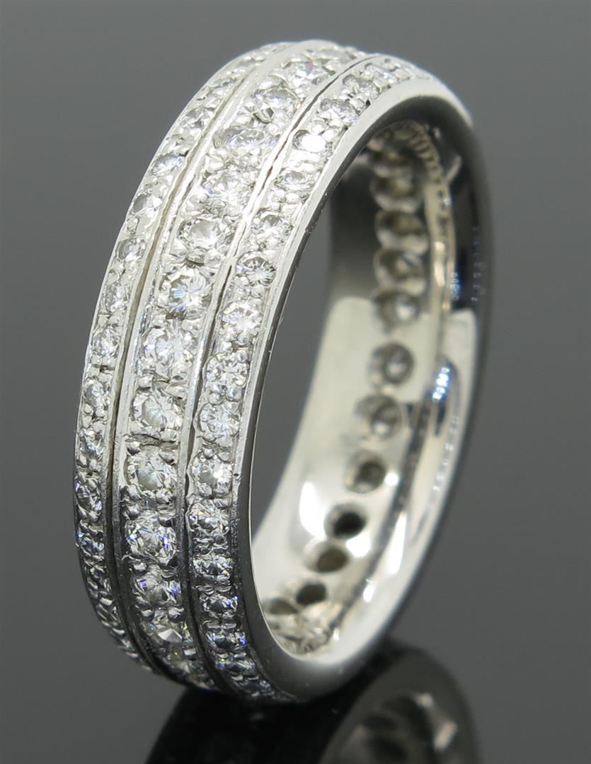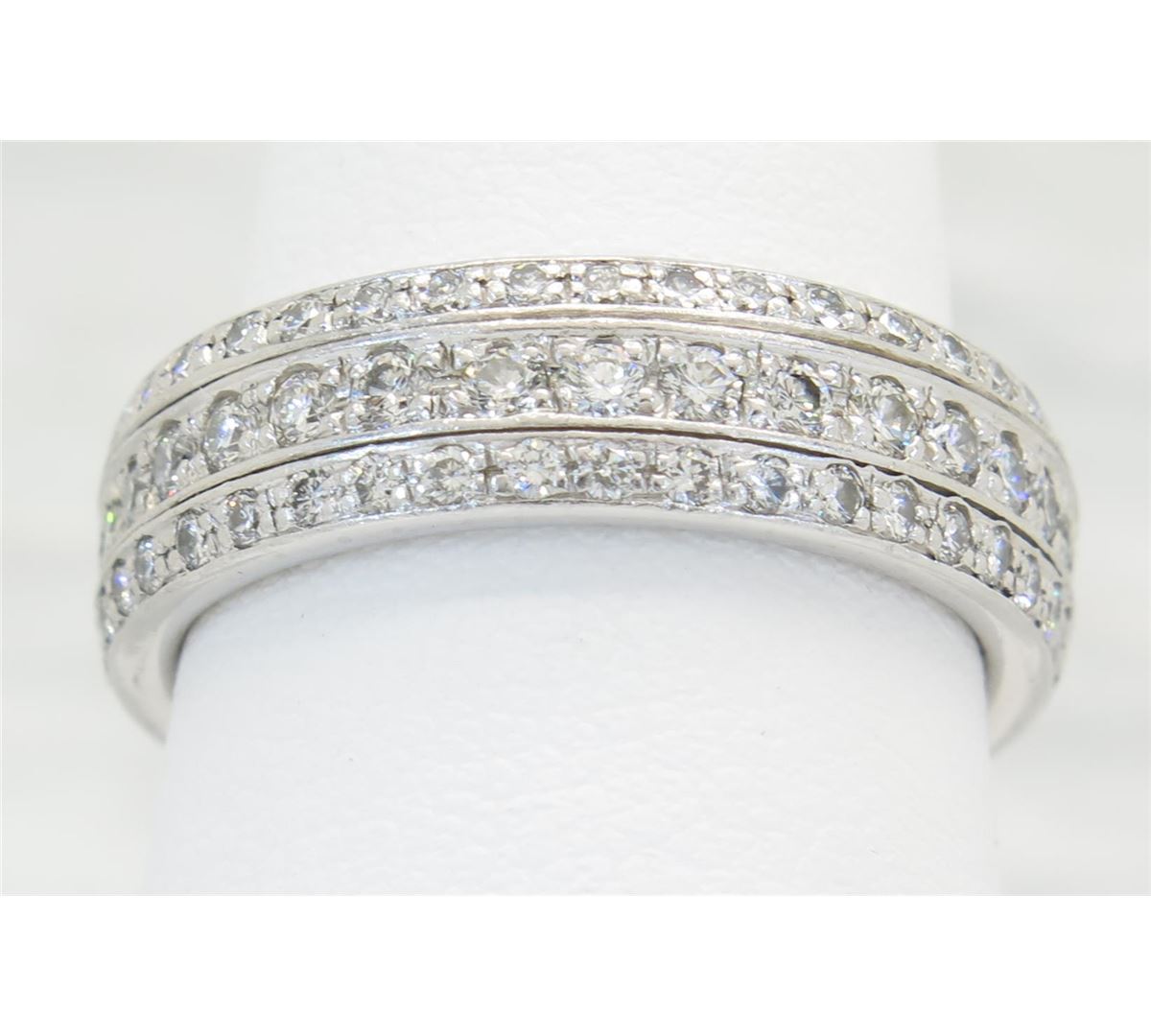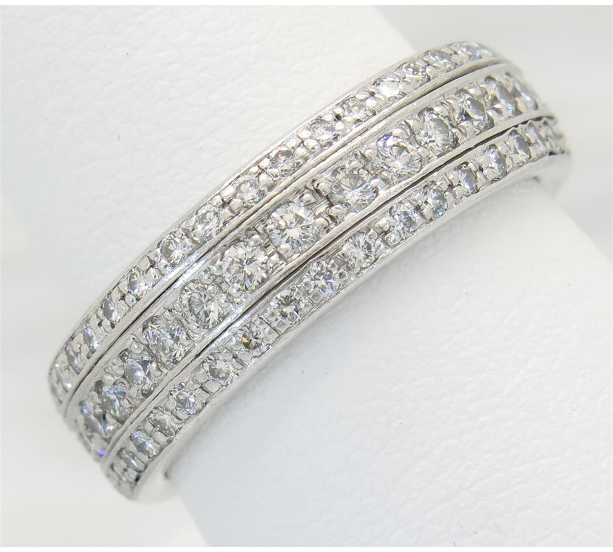 One tested platinum diamond ring. Containing: 113 Round Brilliant Cut Diamonds. Clarity: VS-SI, Color: F-H. Approximate total diamond weight: 1.26CTW. All diamonds are graded in the mounting unless otherwise stated. Weight of ring: 10.2 grams, Size: 6.0.