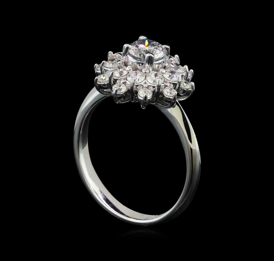 One electronically tested 14KT white gold lady's cast wedding ring with a double basket halo with a bright polish finish. The featured lady's ring has a shank measuring 2.76 millimeters wide. Identified with markings of '14K'. Condition is new, good workmanship. Containing: One prong set round brilliant cut diamond, measuring 5.05 - 5.04 x 3.13mm (depth est.) approximate weight of 0.51ct. Graded in the setting. Clarity SI-2. Color: I Cut Very Good Ten prong set round brilliant cut diamonds, measuring 2.40 - 2.35 x 1.48mm (depth est.) approximate total weight of 10 Stones = 0.51ct. Graded in the setting. Clarity SI-1 to I-1. Color: H - I Cut Good Ten prong set round brilliant cut diamonds, measuring 1.90 - 1.80 x 1.15mm (depth est.) approximate total weight of 10 Stones = 0.25ct. Graded in the setting. Clarity SI-1 to I-1. Color: H - I Cut Good. Total Weight of Diamonds 1.27ct.. Total Weight of Ring 4.50gm. GAS Appraised at $5,670.00.