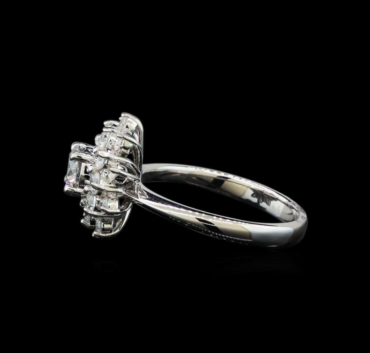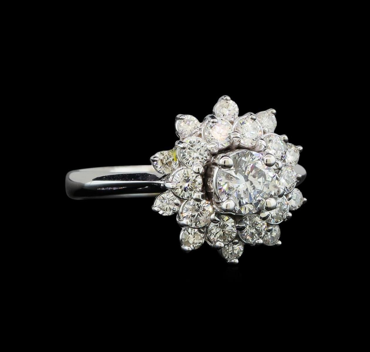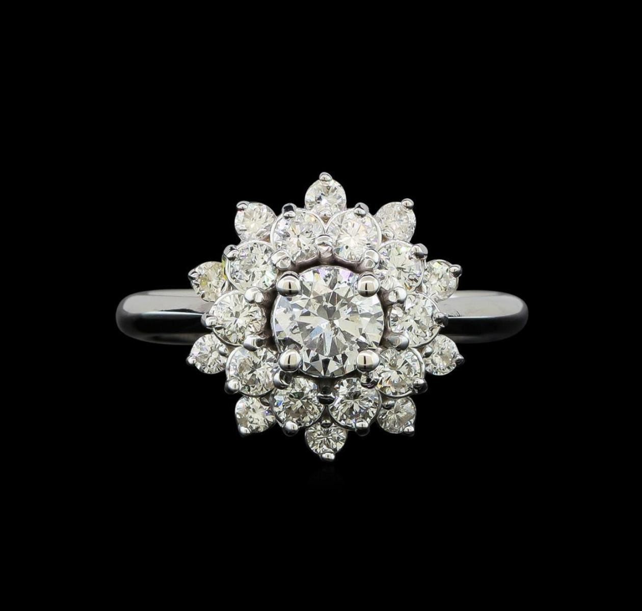 One electronically tested 14KT white gold lady's cast wedding ring with a double basket halo with a bright polish finish. The featured lady's ring has a shank measuring 2.76 millimeters wide. Identified with markings of '14K'. Condition is new, good workmanship. Containing: One prong set round brilliant cut diamond, measuring 5.05 - 5.04 x 3.13mm (depth est.) approximate weight of 0.51ct. Graded in the setting. Clarity SI-2. Color: I Cut Very Good Ten prong set round brilliant cut diamonds, measuring 2.40 - 2.35 x 1.48mm (depth est.) approximate total weight of 10 Stones = 0.51ct. Graded in the setting. Clarity SI-1 to I-1. Color: H - I Cut Good Ten prong set round brilliant cut diamonds, measuring 1.90 - 1.80 x 1.15mm (depth est.) approximate total weight of 10 Stones = 0.25ct. Graded in the setting. Clarity SI-1 to I-1. Color: H - I Cut Good. Total Weight of Diamonds 1.27ct.. Total Weight of Ring 4.50gm. GAS Appraised.