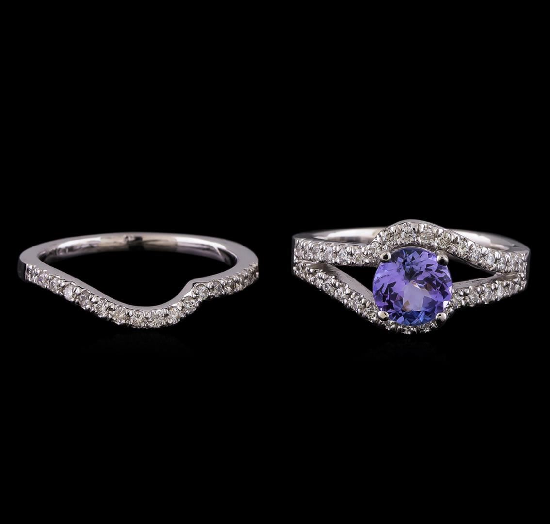 1.27 ctw Tanzanite and Diamond Ring Set - 14KT White Gold