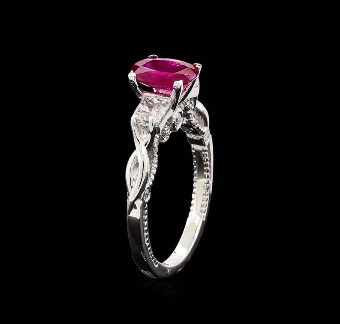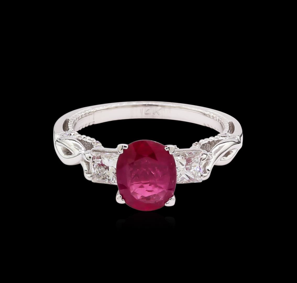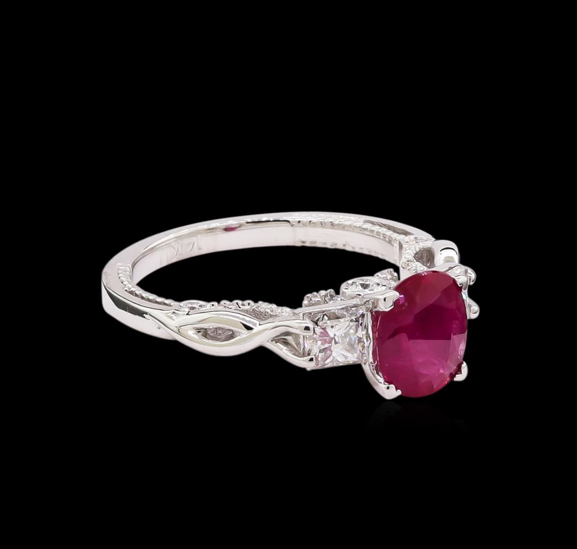 One ring featuring: 14KT white gold weighing 3.30 grams containing one ruby with a total weight of 1.27ct and side diamonds with a total weight of 0.84ct.