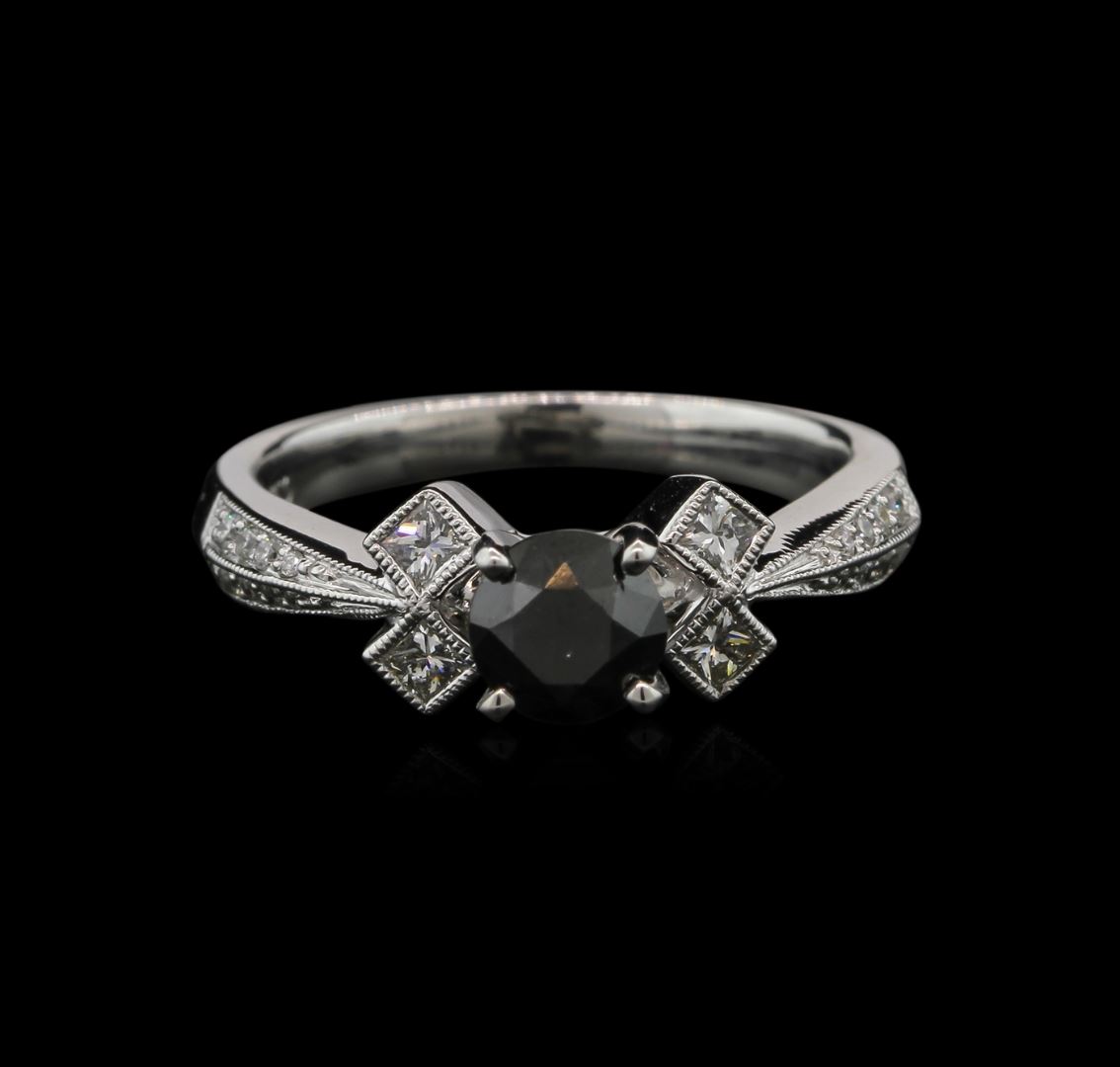 One ring featuring: 18KT white gold weighing 5.57 grams containing one prong set round black diamond center stone with a total weight of 0.96ct and pave set round cut and bezel set princess cut white diamonds with a total weight of 0.31ct.