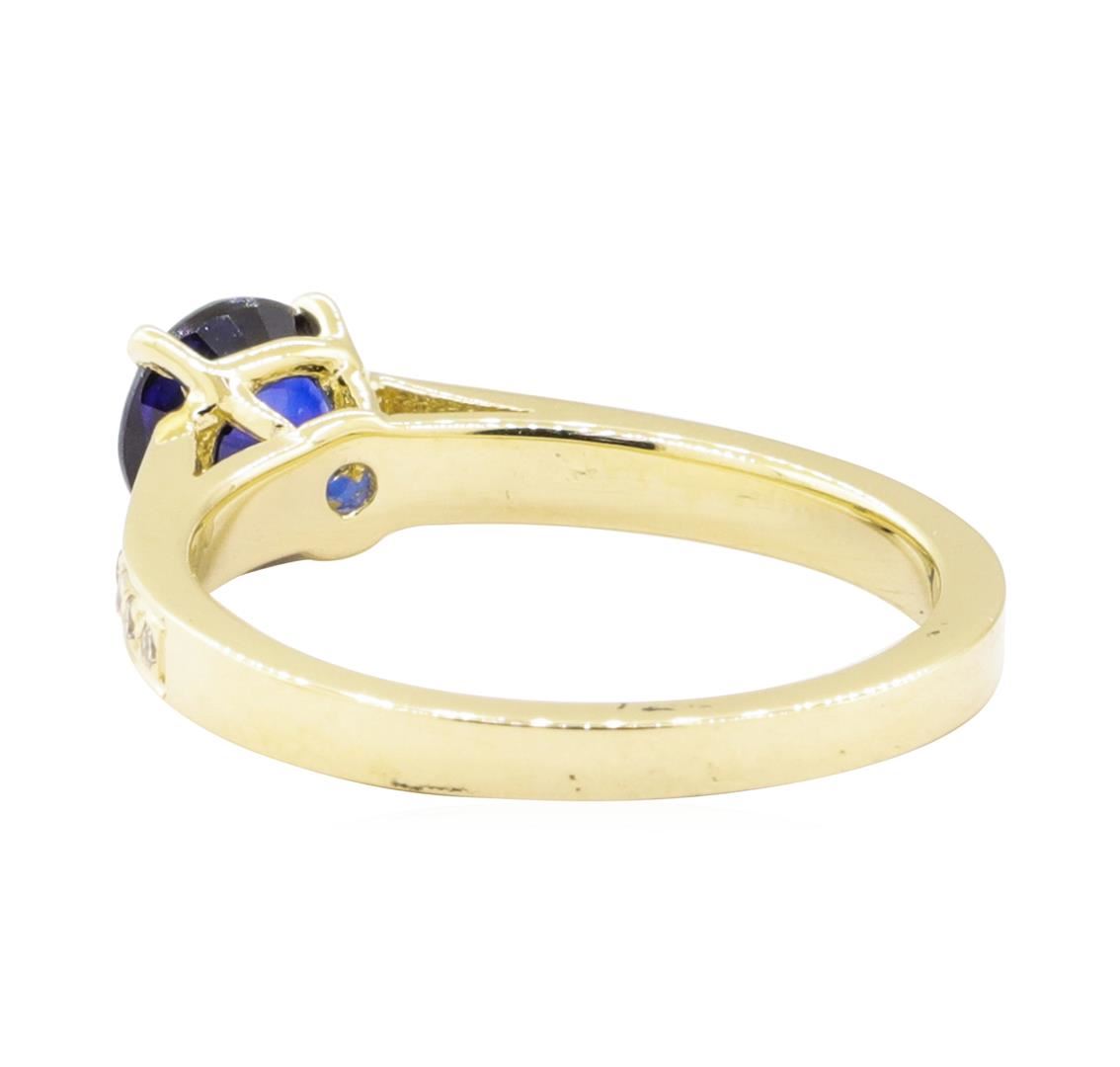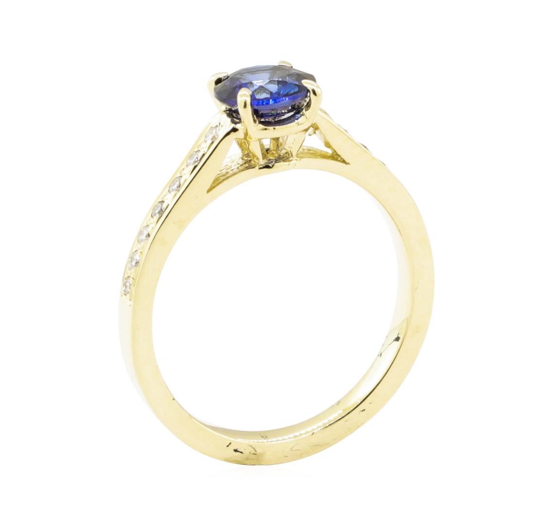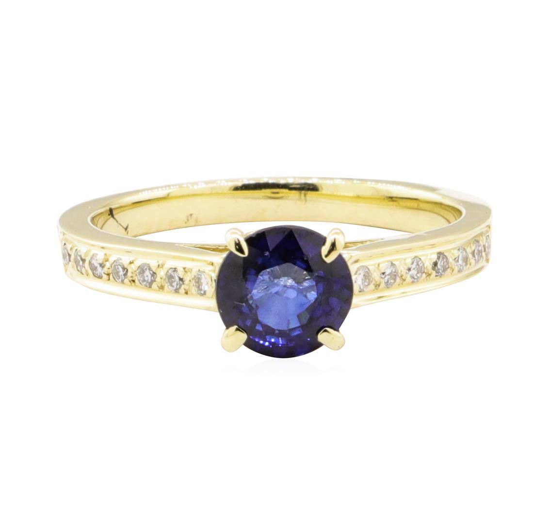 One ring featuring: 14KT yellow gold weighing 3.5 grams containing one sapphire weighing 1.08ct and diamonds weighing 0.20 ctw.