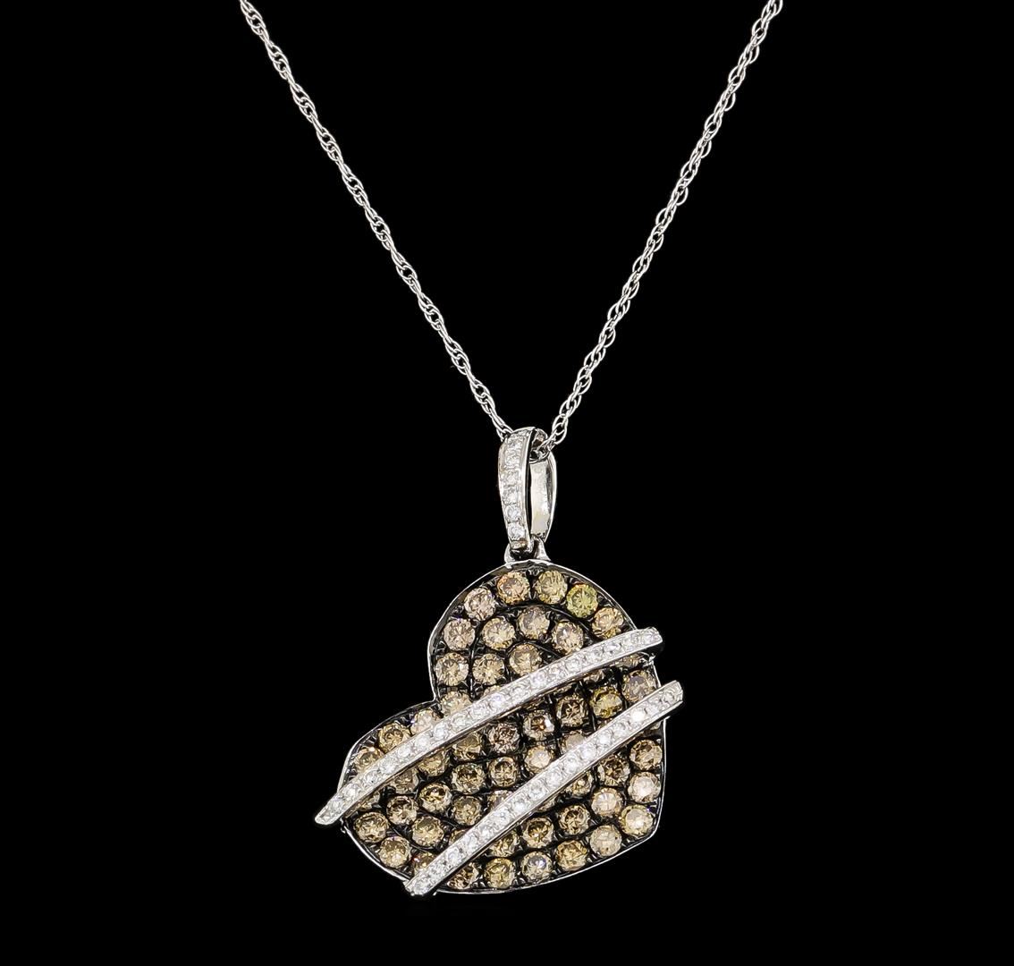 One heart pendant with chain featuring: 14KT white gold weighing 2.50 grams containing brown diamonds with a total weight of 1.15ct and white diamonds with a total weight of 0.13ct.