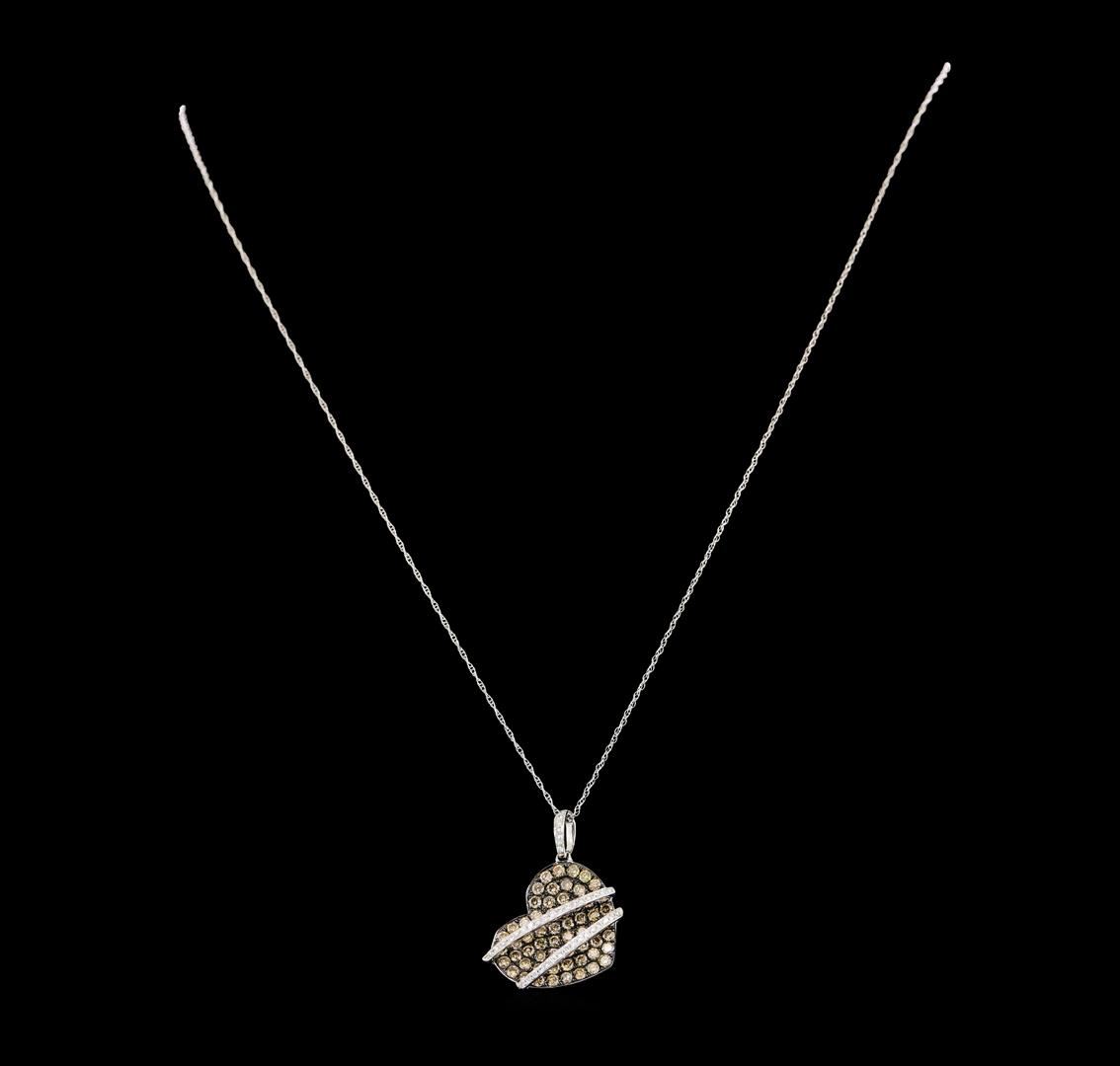 One heart pendant with chain featuring: 14KT white gold weighing 2.50 grams containing brown diamonds with a total weight of 1.15ct and white diamonds with a total weight of 0.13ct.