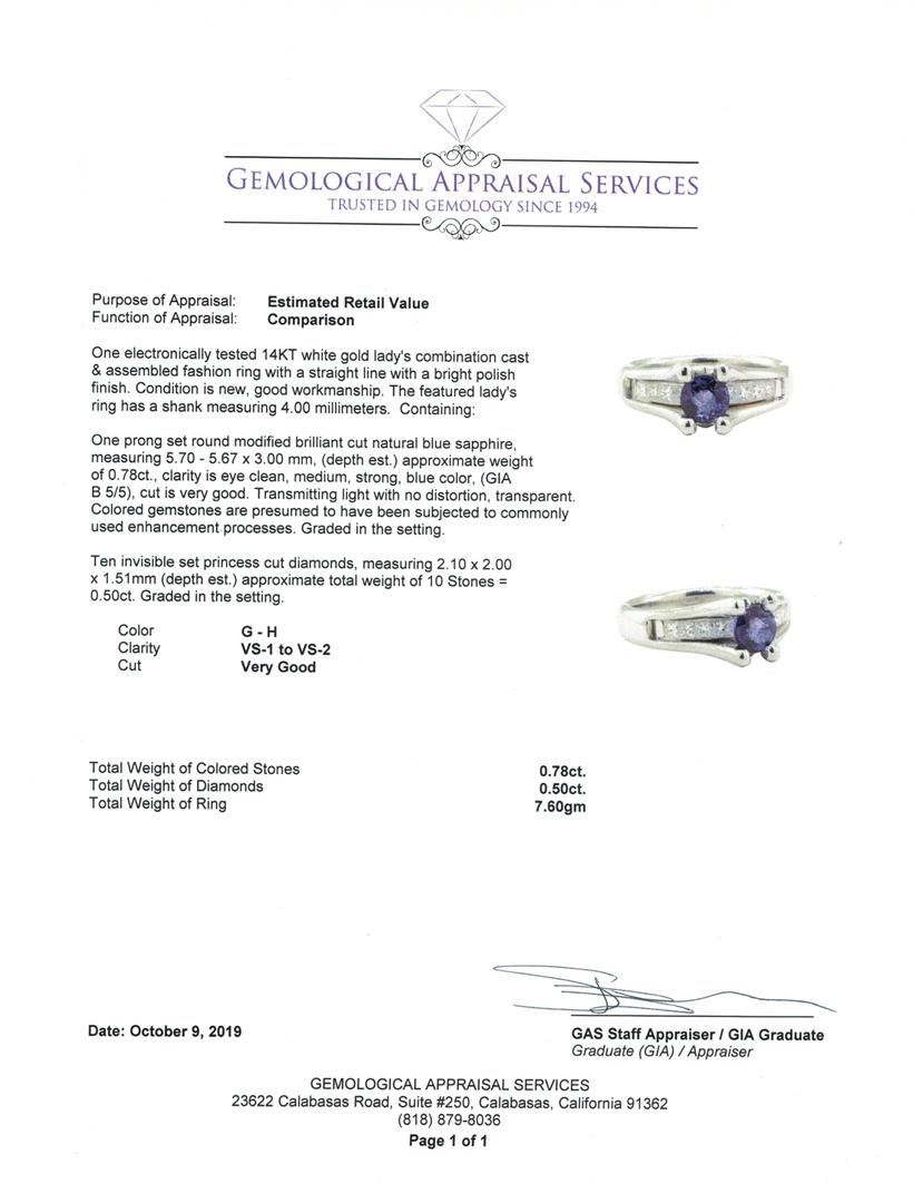 One electronically tested 14KT white gold lady's combination cast & assembled fashion ring with a straight line with a bright polish finish. The featured lady's ring has a shank measuring 4.00 millimeters. Condition is new, good workmanship. Containing: O