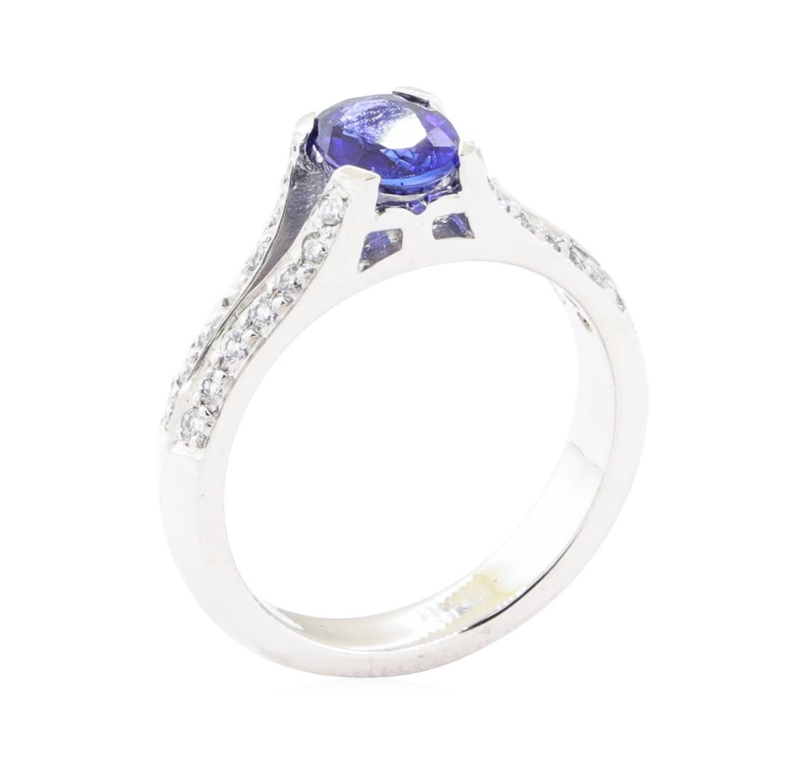 One electronically tested 18KT white gold lady's cast fashion ring with a split cathedral shank with a bright polish finish. The featured lady's ring has a shank measuring 3.50 millimeters wide. Identified with markings of '18K'. Condition is new, good wo