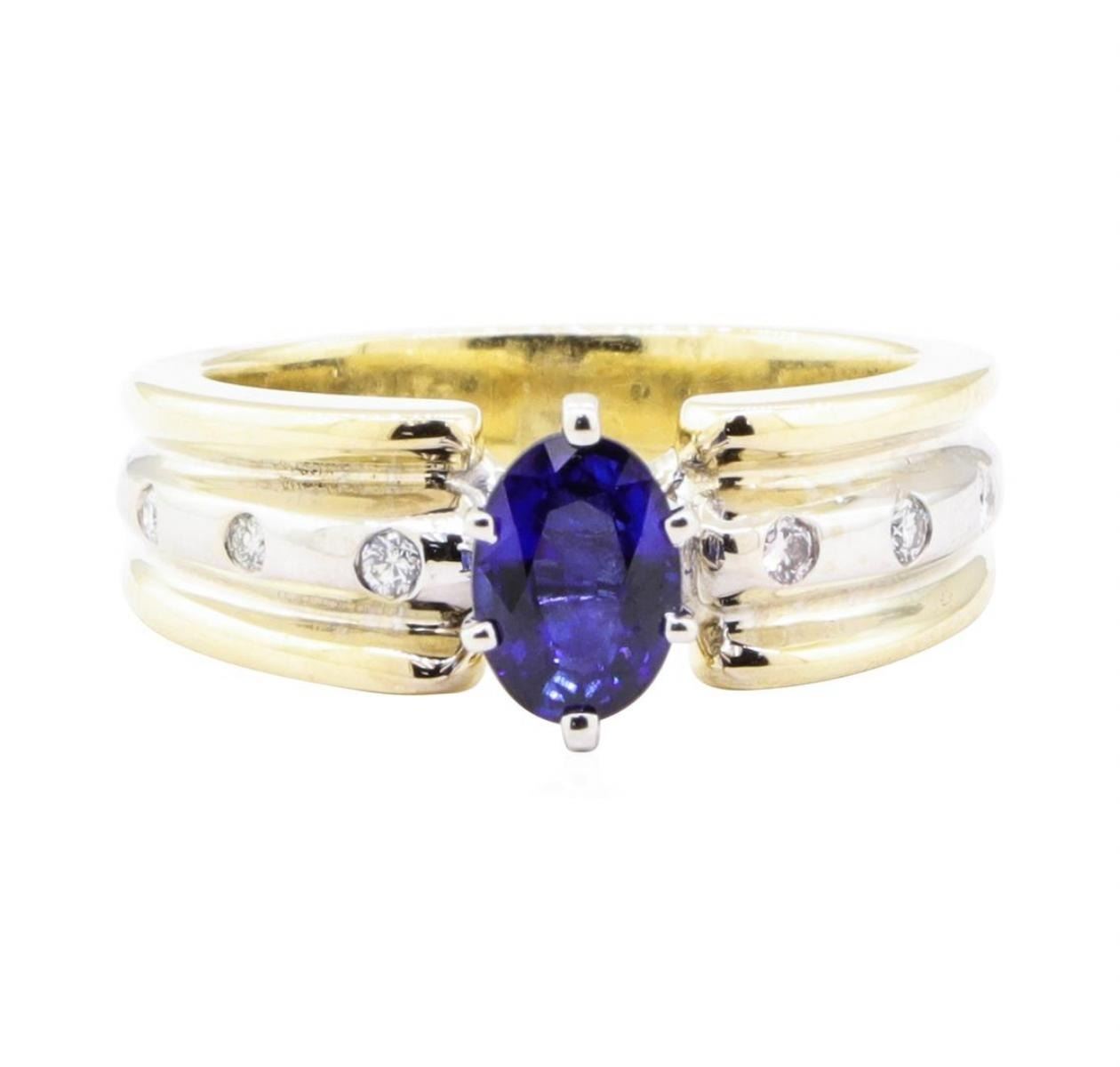 One ring featuring: 14KT yellow and white gold weighing 9.9 grams containing one sapphire weighing 1.03ct and diamonds weighing 0.25ctw.