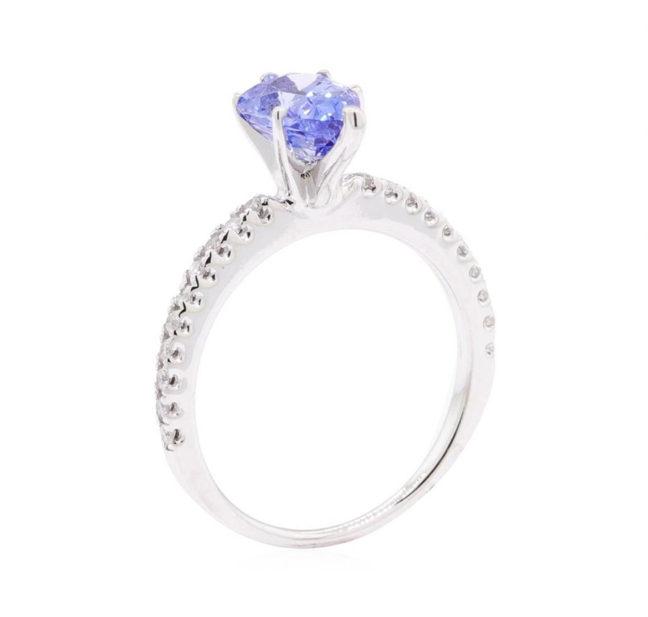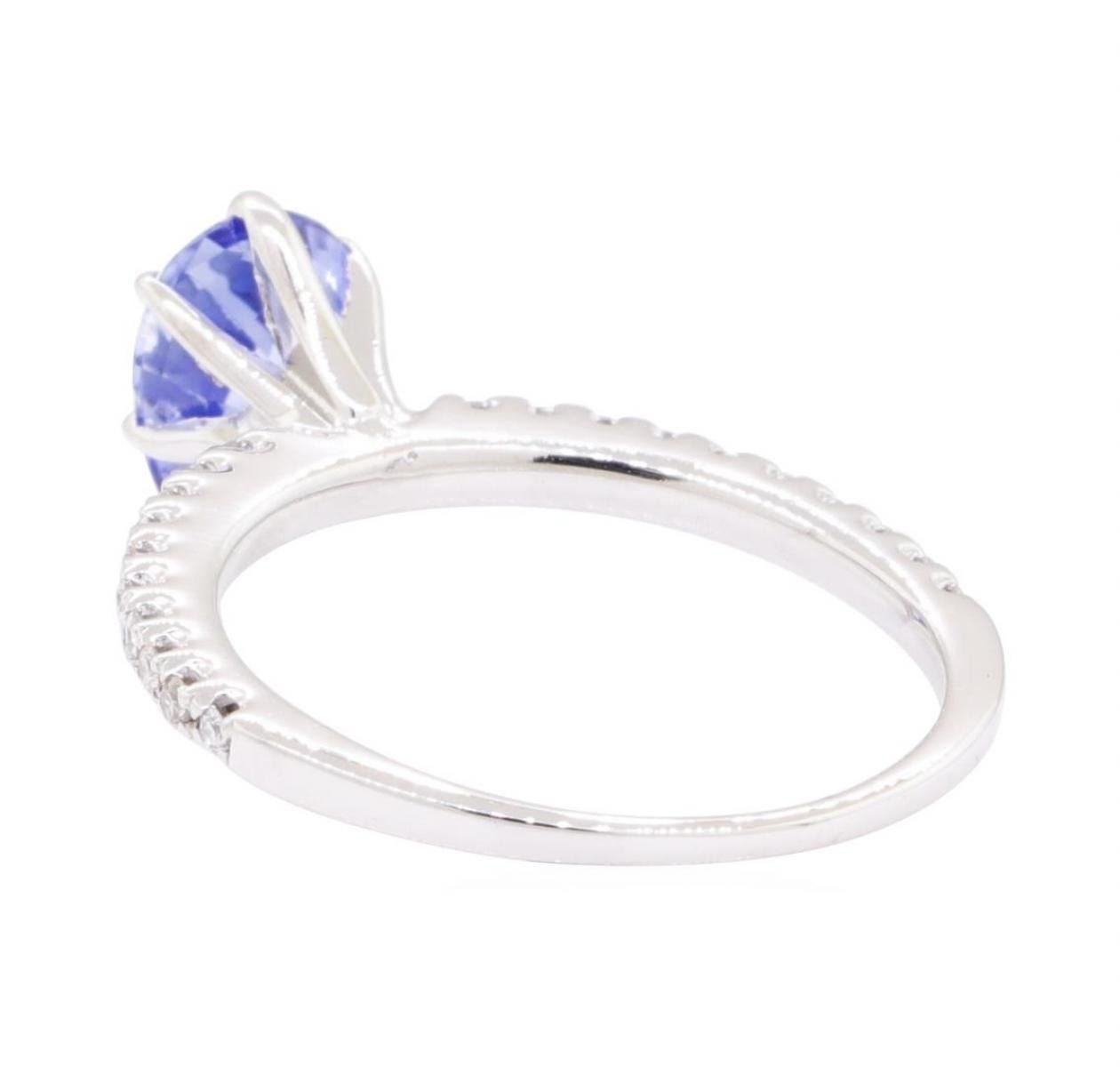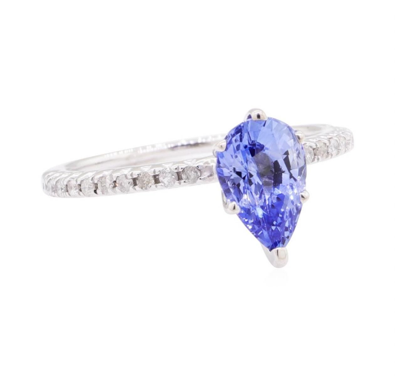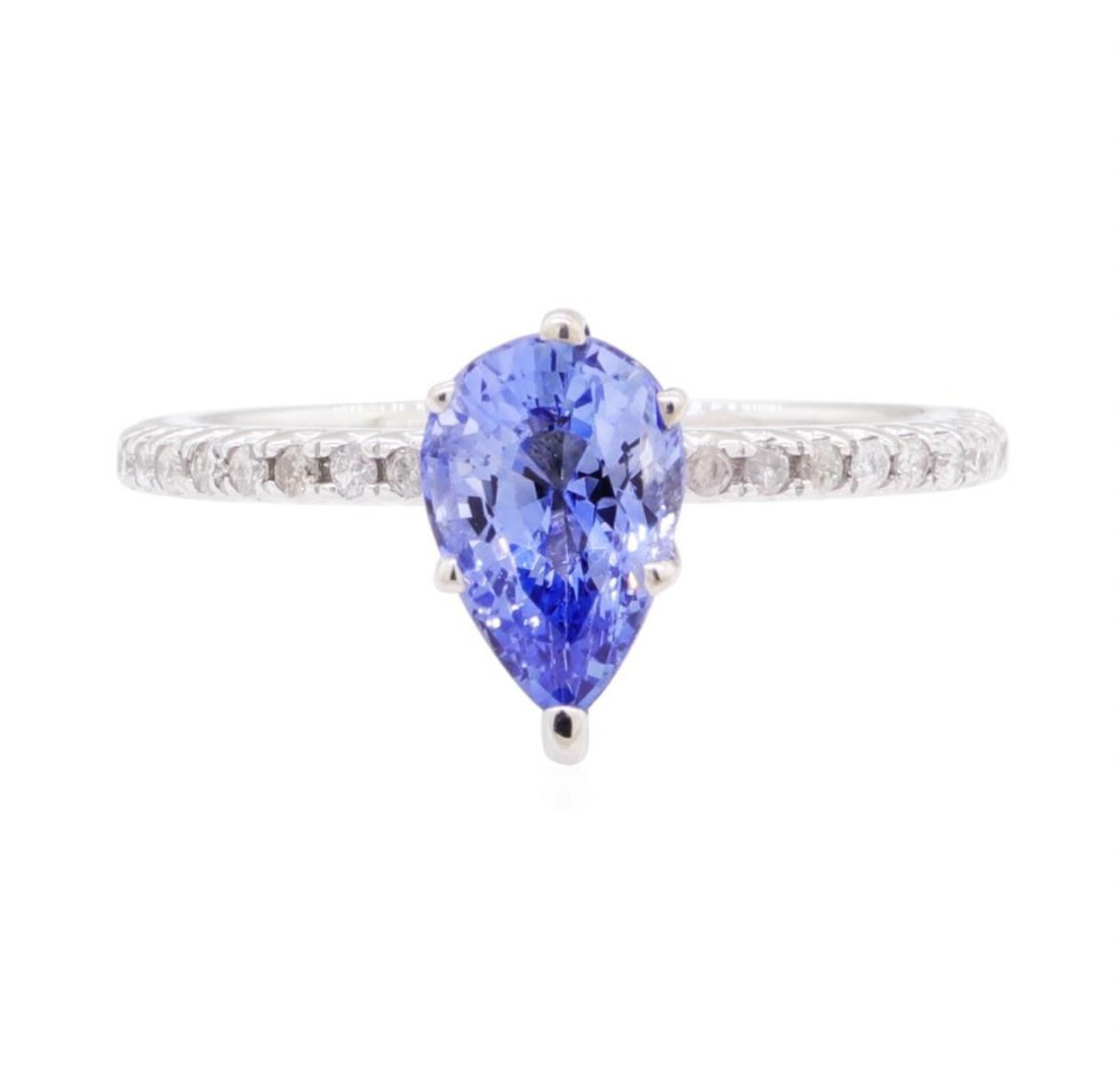 One lady's ring featuring: 14KT white gold weighing 1.9 grams containing one tanzanite weighing 1.28ct and diamonds weighing 0.30ctw.