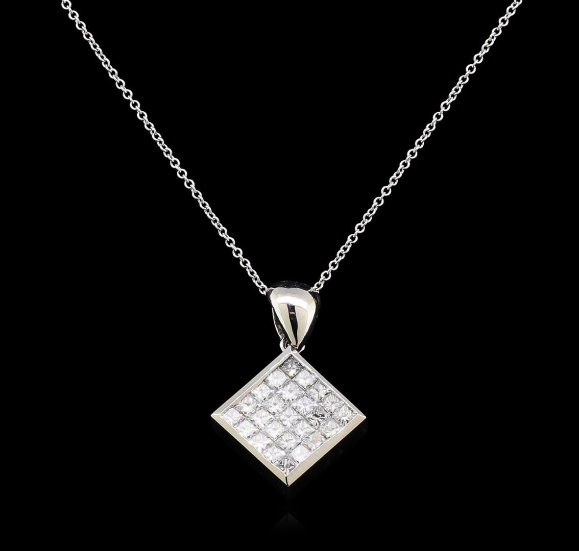 One pendant with chain featuring: 14KT white gold weighing 5.80 grams containing diamonds with a total weight of 1.28ct.
