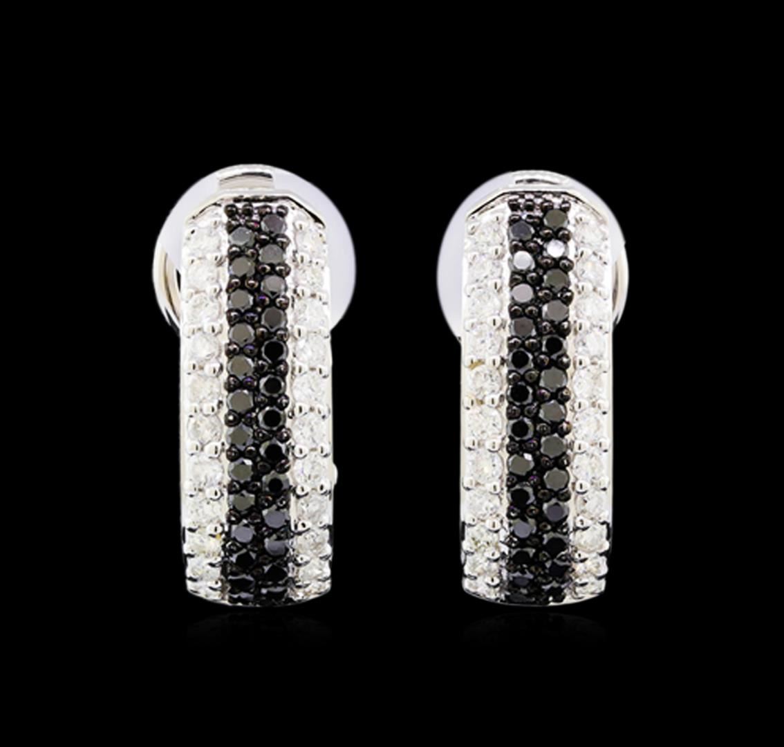 One pair electronically tested 14KT white gold lady's combination cast & assembled J style earrings with Omega clip backs with posts with a bright polish finish. Identified with markings of "585". Condition is new, good workmanship. Containing: Fifty-Two prong set round brilliant cut diamonds, measuring 1.50 - 1.40 x 0.93mm (depth est.) approximate total weight of 52 Stones = 0.65ct. Graded in the setting. Cut Good Forty-Four prong set round brilliant cut diamonds, measuring 1.60 - 1.55 x 0.95mm (depth est.) approximate total weight of 44 Stones = 0.65ct. Graded in the setting. Clarity: SI-1 to SI-2. Color: G - Good. Total Weight of Diamonds 1.30ct. Total Weight of Earrings 5.60gm. GAS Appraised at $3,755.00.