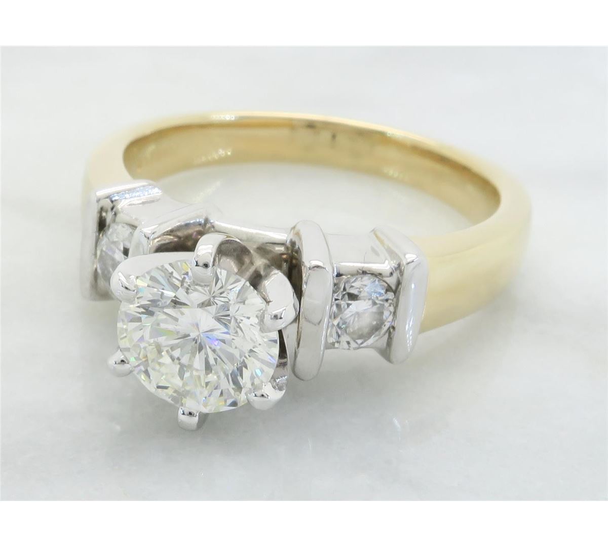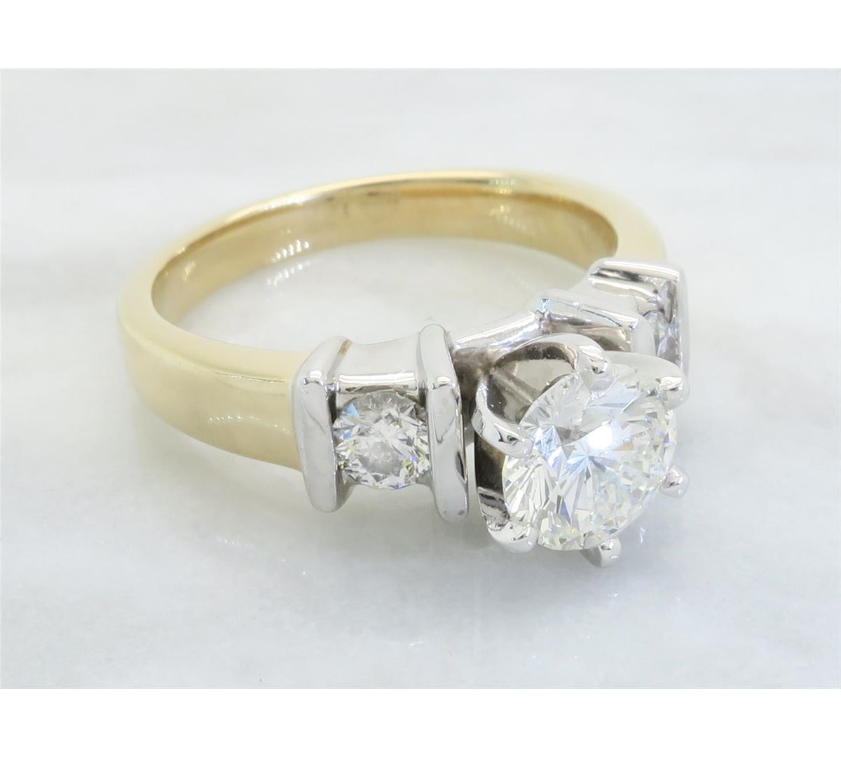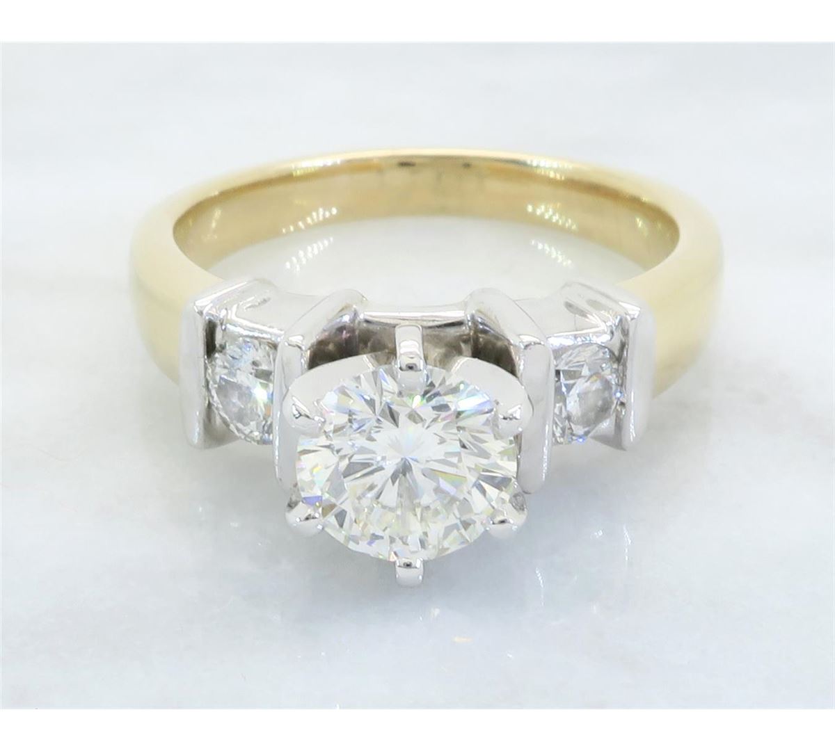 One tested 14K yellow and white gold certified diamond ring. Containing: One IGI Certified Brilliant Cut Diamond. Center Diamond Size: 1.00CT, Clarity: SI2, Color: I. Weight of ring: 6.5 grams. Size: 6.5. 1.30 C.TW.
