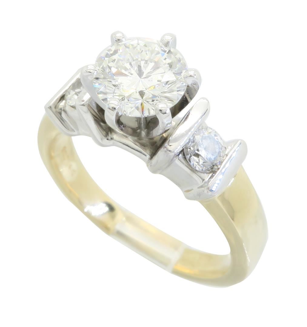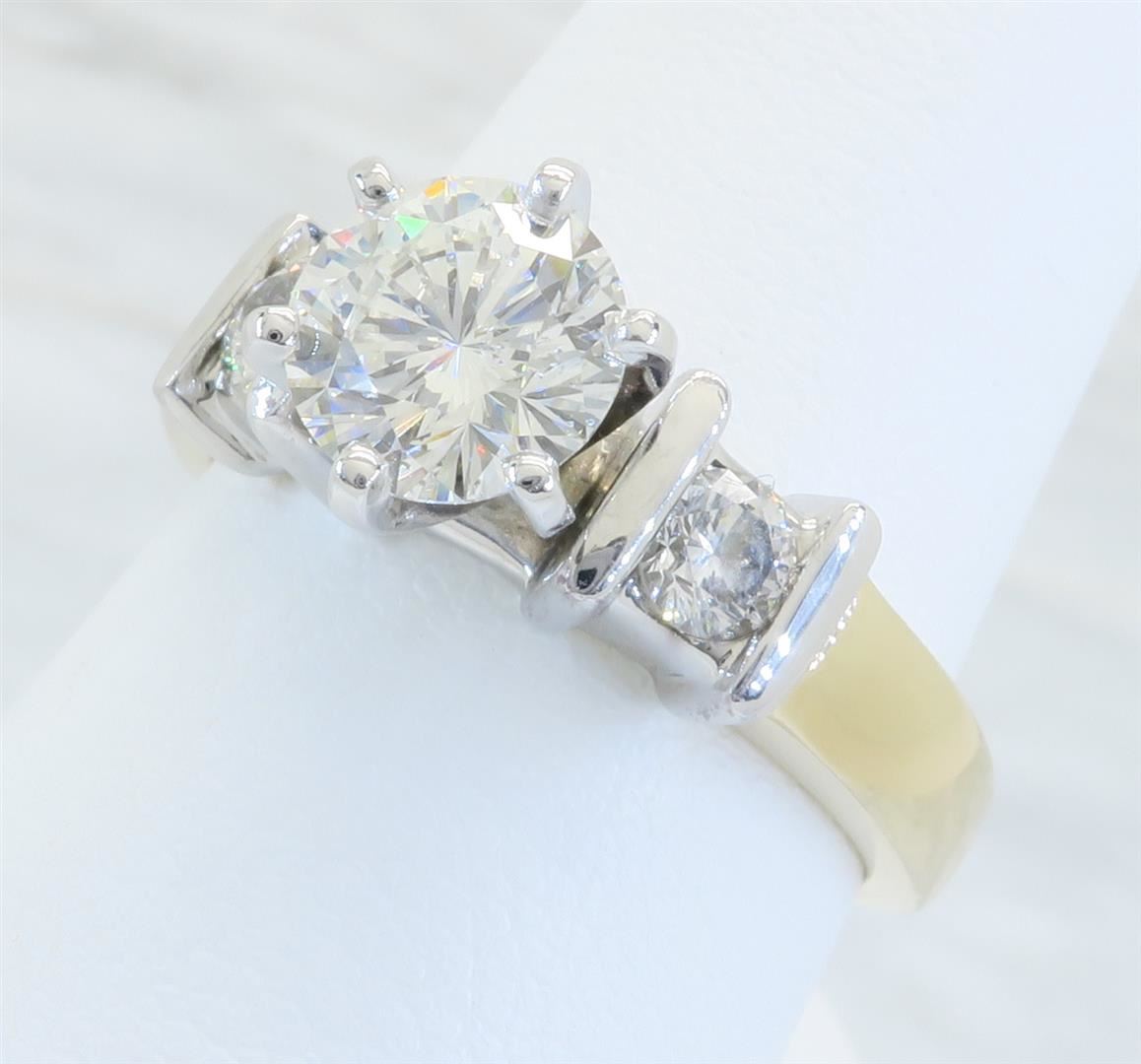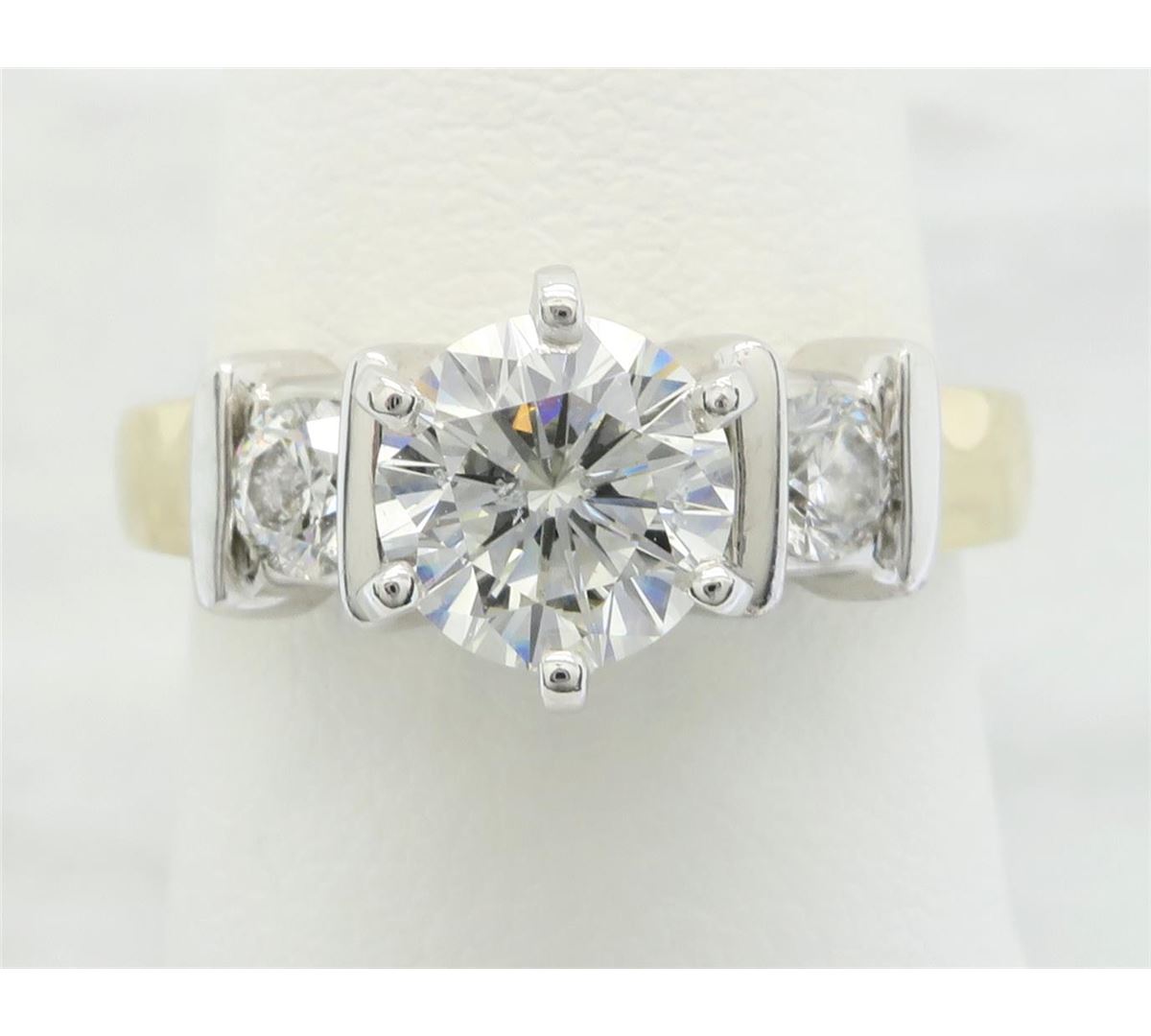 One tested 14K yellow and white gold certified diamond ring. Containing: One IGI Certified Brilliant Cut Diamond. Center Diamond Size: 1.00CT, Clarity: SI2, Color: I. Weight of ring: 6.5 grams. Size: 6.5. 1.30 C.TW.
