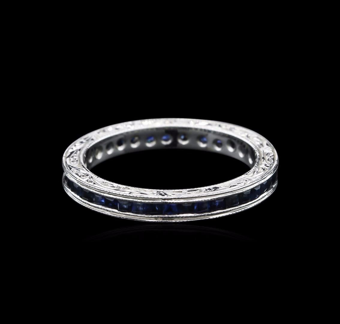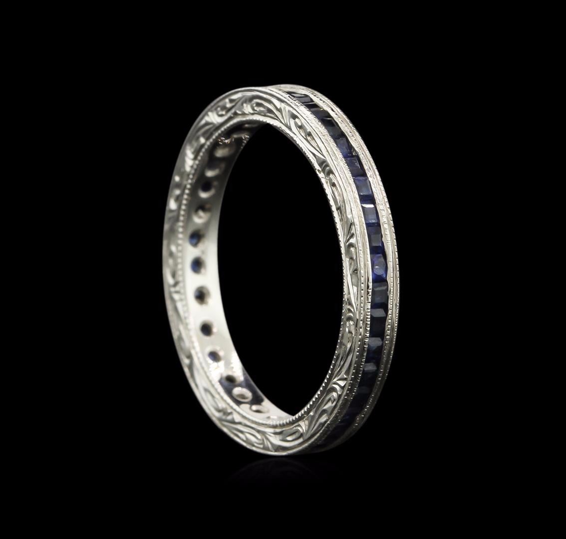 One ring featuring: 18KT white gold weighing 3.00 grams containing channel set princess cut blue sapphires with a total weight of 1.30ct.