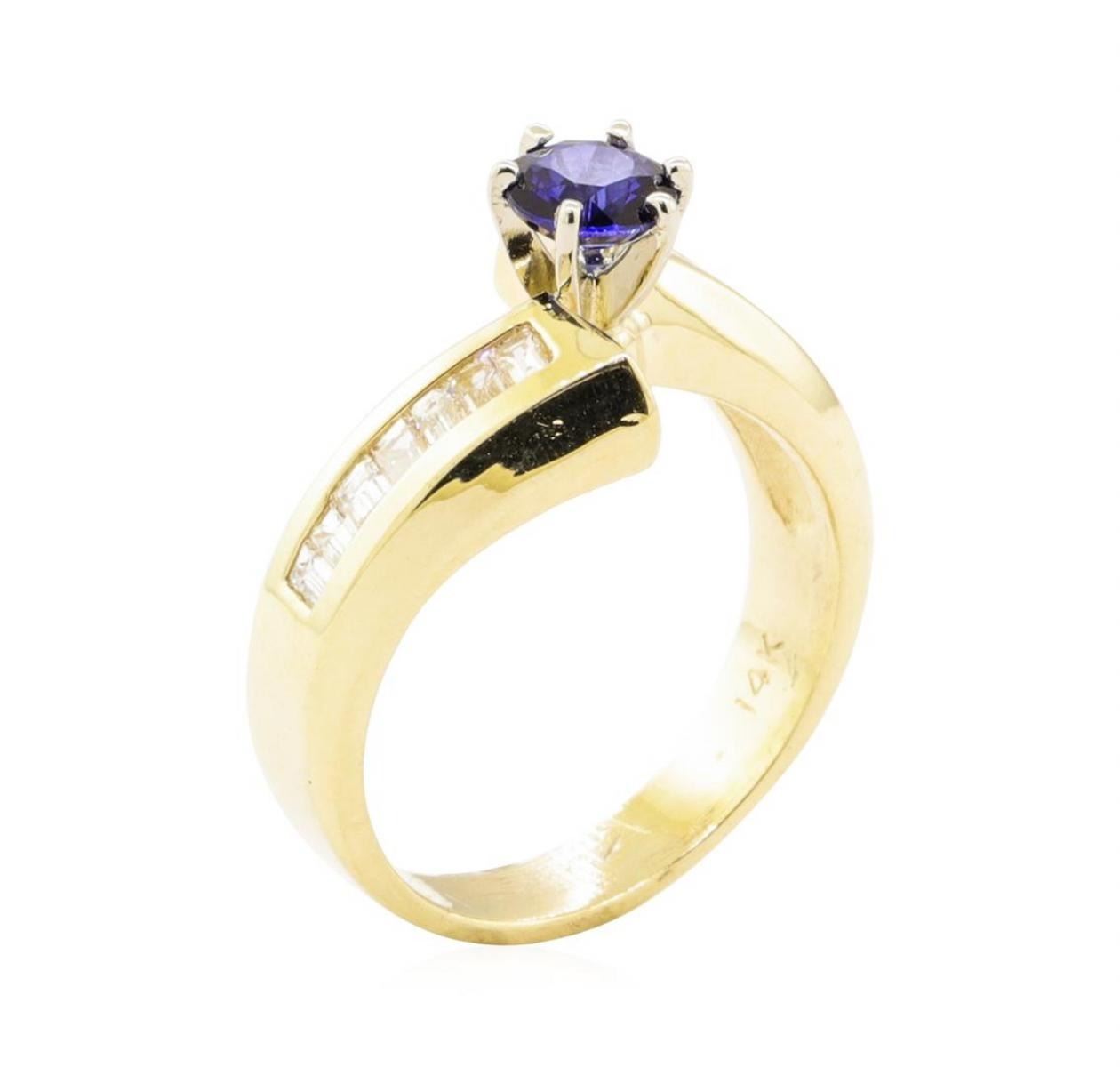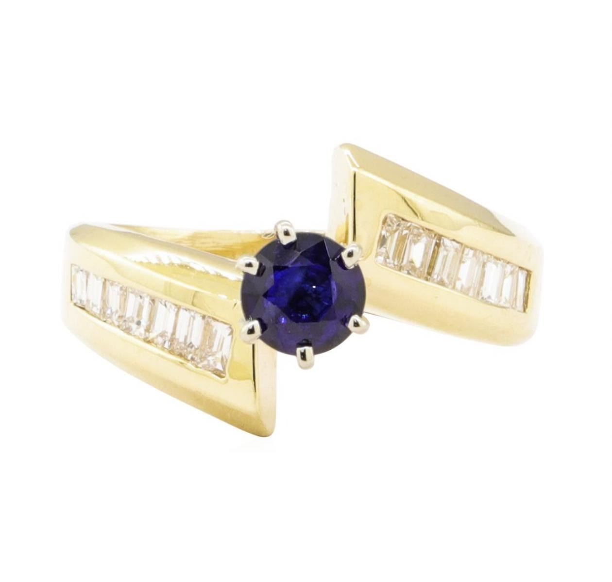 One ring featuring: 14KT yellow gold weighing 5.6 grams containing one sapphire weighing 0.61ct and diamonds weighing 0.70 ctw.