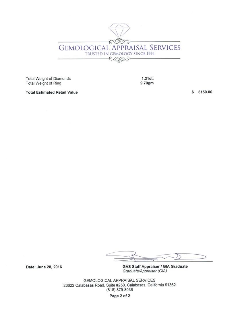 Not all Jewelry, watches or loose stones are appraised and the appraisals are provided for bidders only in certain instances at the discretion of SAA. Our appraisals are conducted by independent third-party appraisal firms. Such firms may be certified GIA Gemologists or have education in the industry or alternative certifications. Appraisals should be used for verification of gemstone and/or metal weight, size, and grade only, not actual value for resale or insurance purposes. Appraisal value should be not considered for actual value, as price varies greatly from retail locations and other merchants in different geographic locations. All Items auctioned by SAA should not be purchased with a view or expectation toward resale for appraisal price given, or to make a profit. The ultimate value for which an item can be resold may vary drastically from the appraisals listed by SAA.