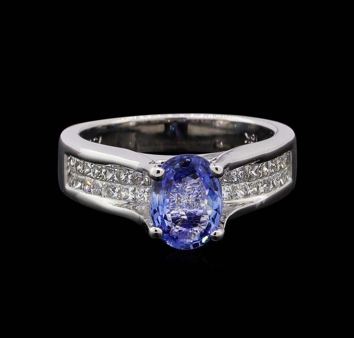 One ring : 18KT white gold weighing 5.59gm containing one tanzanite with a total weight of 1.31ct and diamonds weighing 0.2ctw.