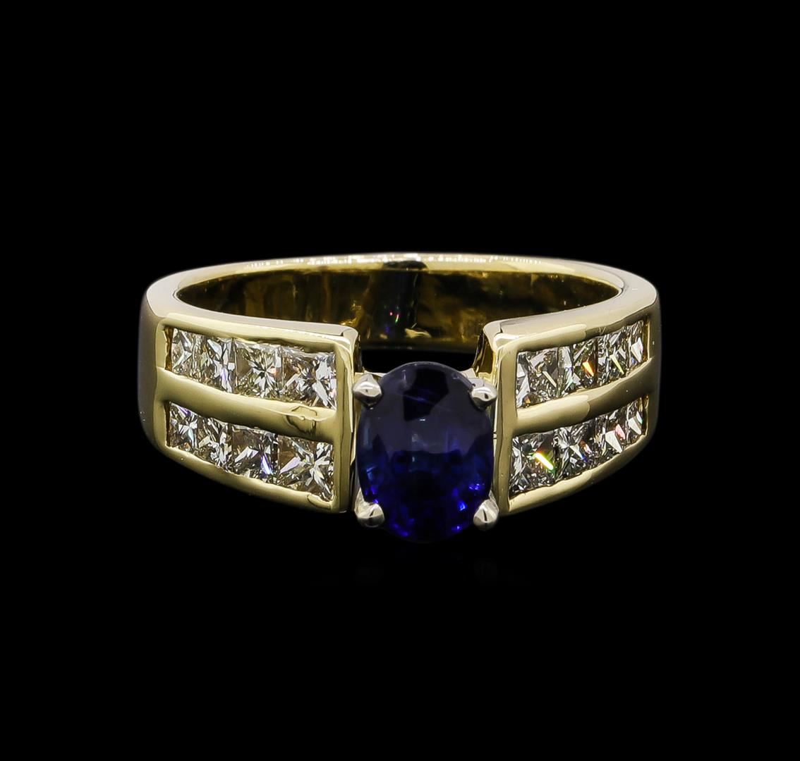 One ring : 14KT yellow gold weighing 5.35gm containing one sapphire with a total weight of 1.32ct and diamonds weighing 0.7ctw.