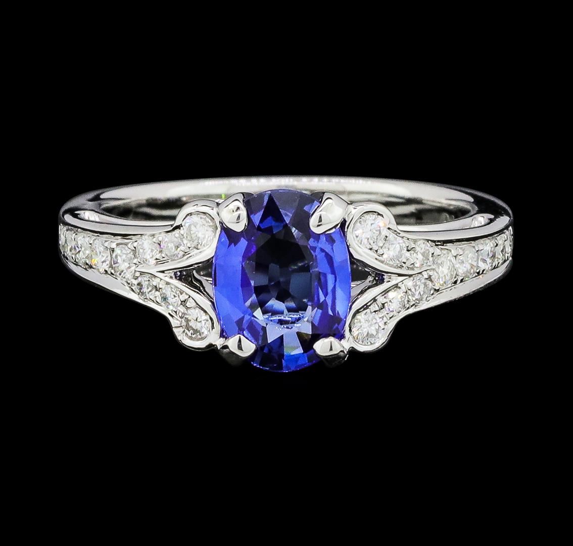 One lady's ring featuring: 18KT white gold weighing 4.1 grams containing one sapphire weighing 1.32ct and diamonds weighing 0.35ctw.