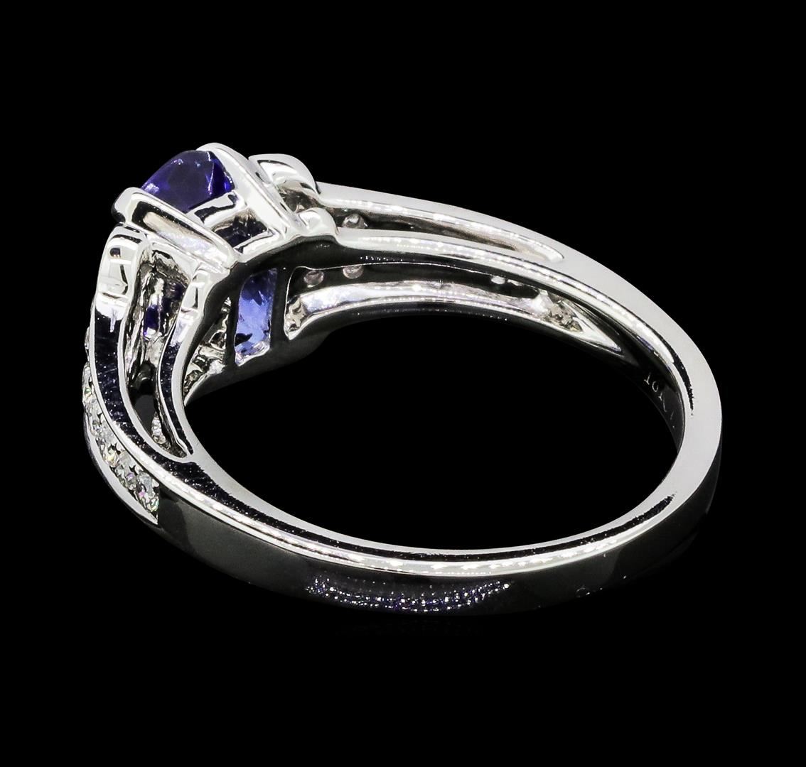 One lady's ring featuring: 18KT white gold weighing 4.1 grams containing one sapphire weighing 1.32ct and diamonds weighing 0.35ctw.