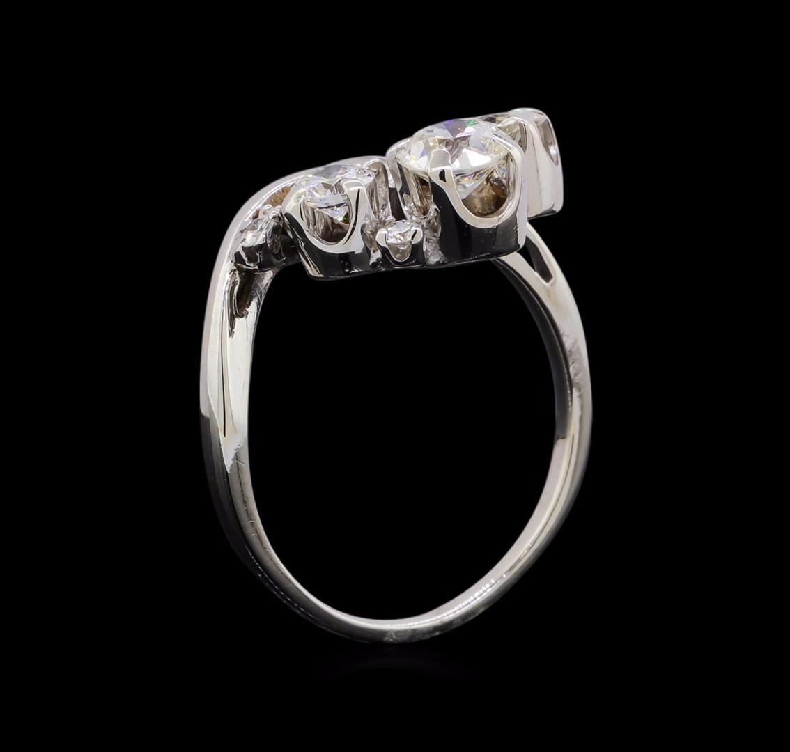 One electronically tested 14KT white gold ladies cast diamond cluster ring with a bright polish finish. The ring features a stylized diamond cluster supported by asymmetrical shoulders, completed by a one millimeter wide band. Identified with markings of "14K". Condition is good. Containing: One prong set transitional cut diamond, measuring 5.20 - 5.20 x 3.22mm (depth est.) approximate weight of 0.51ct. Graded in the setting. Clarity: VVS-2. Color: H One prong set transitional cut diamond, measuring 5.10 - 5.10 x 3.16mm (depth est.) approximate weight of 0.49ct. Graded in the setting. Clarity: I-1. Color: H One prong set round brilliant cut diamond, measuring 3.90 - 3.90 x 2.34mm (depth est.) approximate weight of 0.23ct. Graded in the setting. Clarity: SI-2. Color: G Three prong set round brilliant cut diamonds, measuring 2.00 - 1.90 x 1.17mm (depth est.) approximate total weight of 3 Stones = 0.10ct. Graded in the setting. Clarity: SI-1 to SI-2. Color: G - I. Total Weight of Diamonds 1.33ct. Total Weight of Ring 3.83gm. AIG Appraised at $8,455.00.