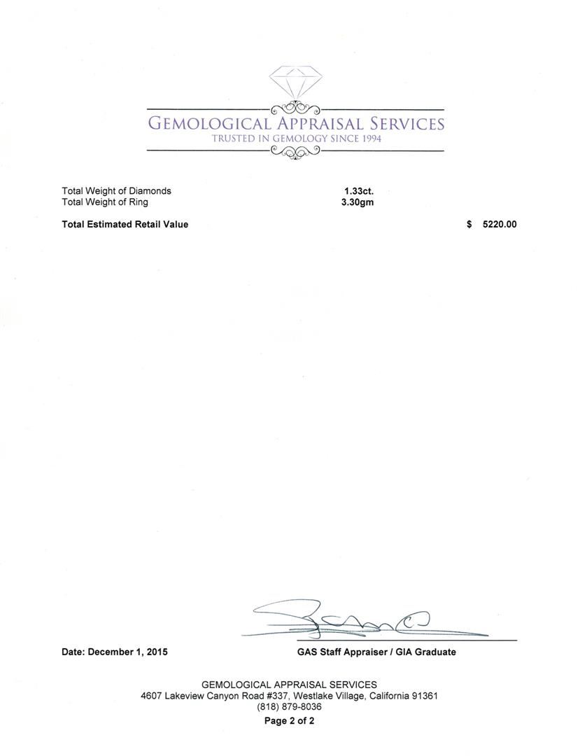Regarding Appraised Jewelry, Watches and Loose Stones –