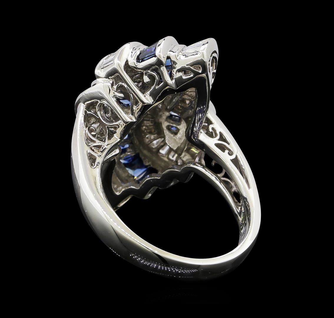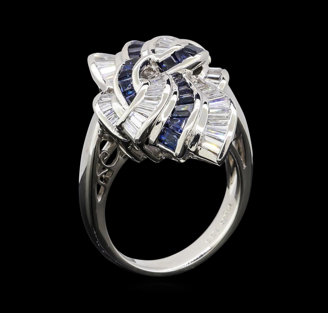 One ring featuring: Platinum containing Sapphire with a total weight of 1.33ct and Diamonds with a total weight of 1.83ct. Total Weight of Ring: 15.3 grams.