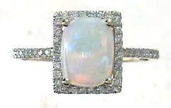 One Australian Opal and Diamond Ring featuring: 14KT Yellow Gold with a total weight of 3.61 grams, Australian Opal with a total weight of 1.34ct and 44 Diamonds with a total weight of 0.17ctw.