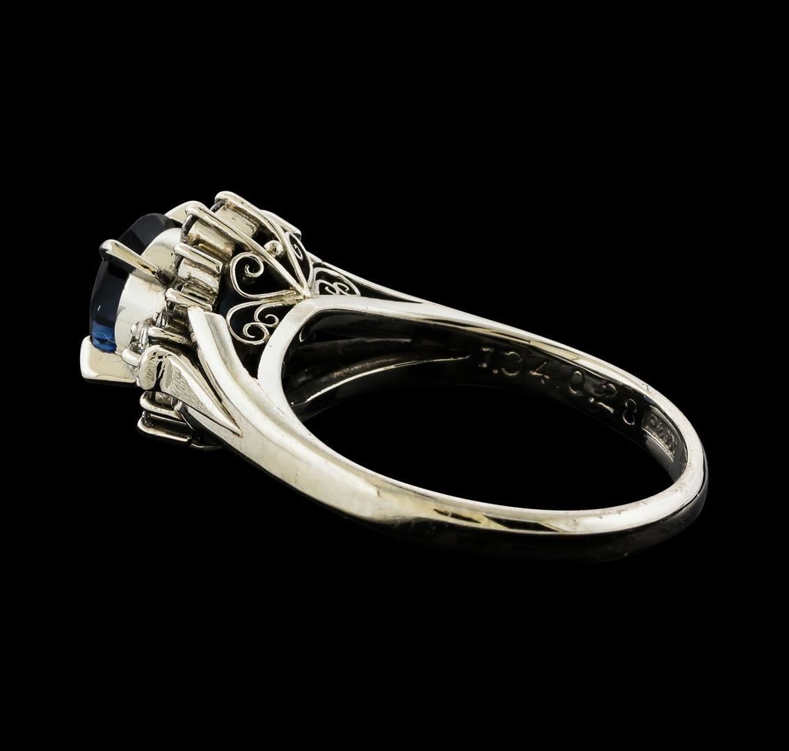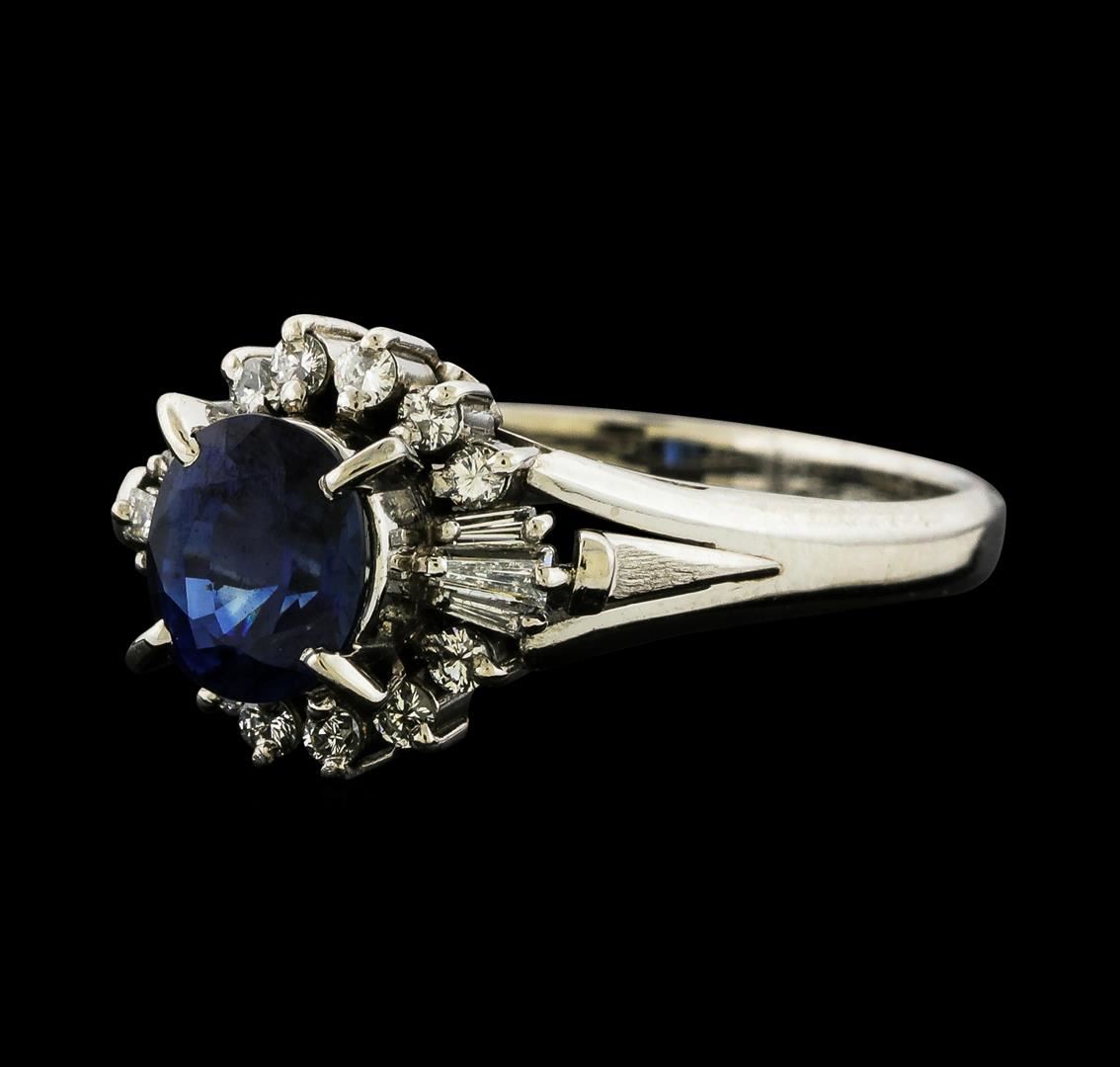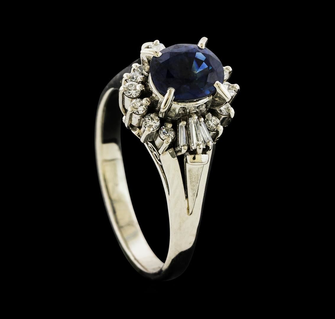 One ring featuring: Platinum containing Sapphire with a total weight of 1.34ct and Diamonds with a total weight of 0.28ct. Total Weight of Ring: 5.9 grams.