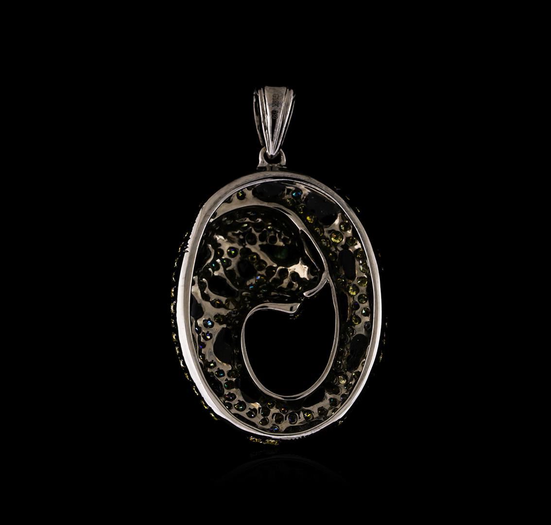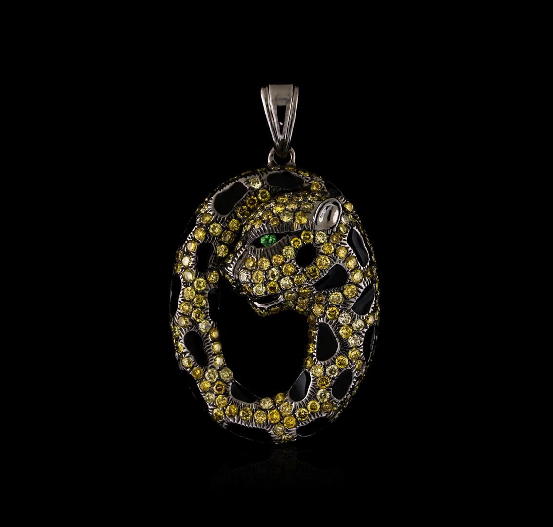 One pendant featuring: 18KT white gold weighing 5.60 grams containing diamonds with an approximate total weight of 1.34ct, one tsavorite stone (eye), and enamel.