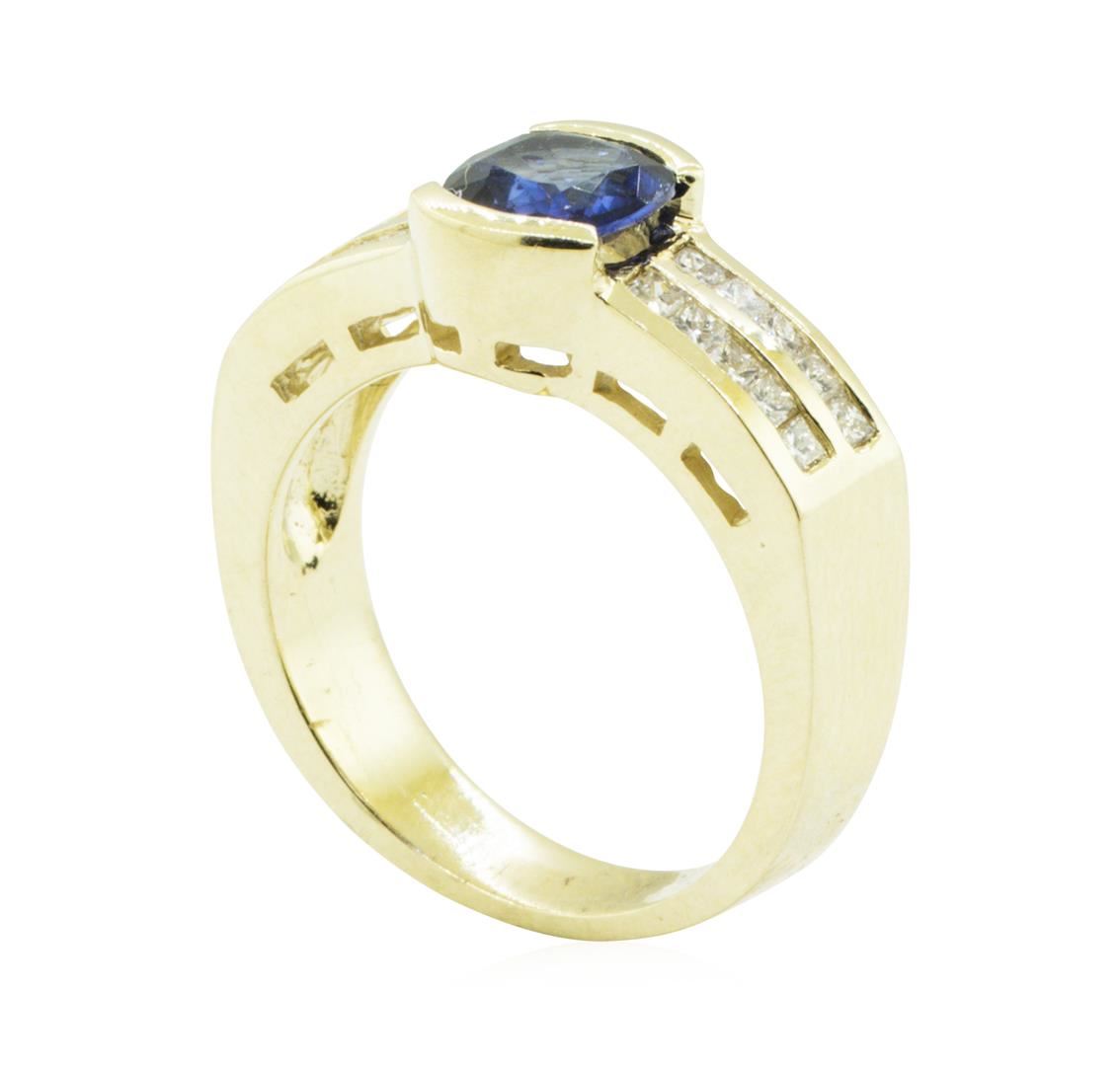 One electronically tested 14KT yellow gold lady's cast fashion straight line ring with a double row cathedral shank with a bright polish finish. The featured lady's ring has a shank measuring 3.80 millimeters in width. Identified with markings of '14K'. C