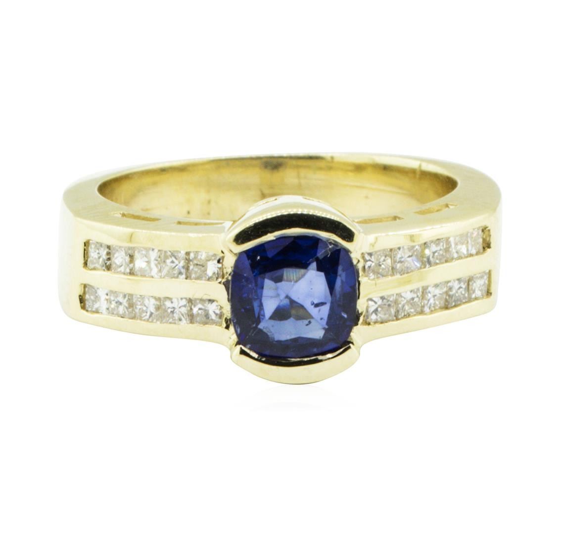 One electronically tested 14KT yellow gold lady's cast fashion straight line ring with a double row cathedral shank with a bright polish finish. The featured lady's ring has a shank measuring 3.80 millimeters in width. Identified with markings of '14K'. C