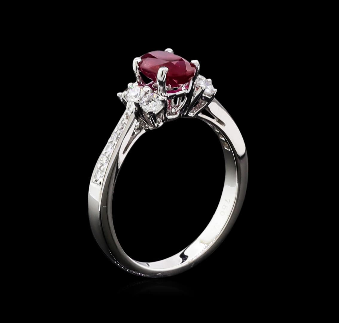 1.37ct Ruby and Diamond Ring - 18KT White Gold