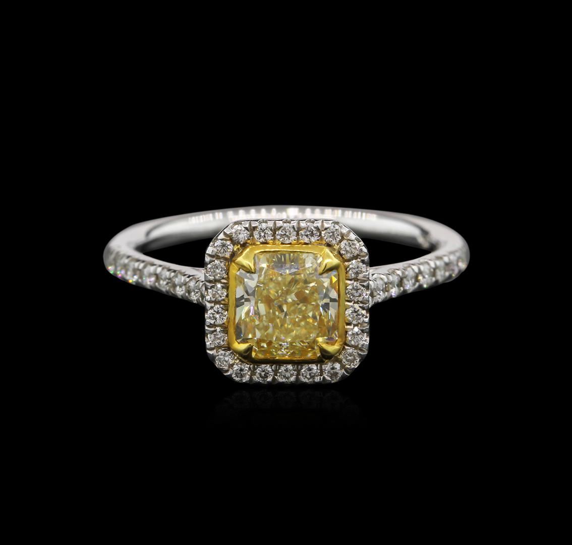 One ring featuring: 18KT white gold weighing 3.26 grams containing one fancy yellow diamond center stone with a total weight of 1.06ct and white diamond side stones with a total weight of 0.31ct. GIA Appraised.