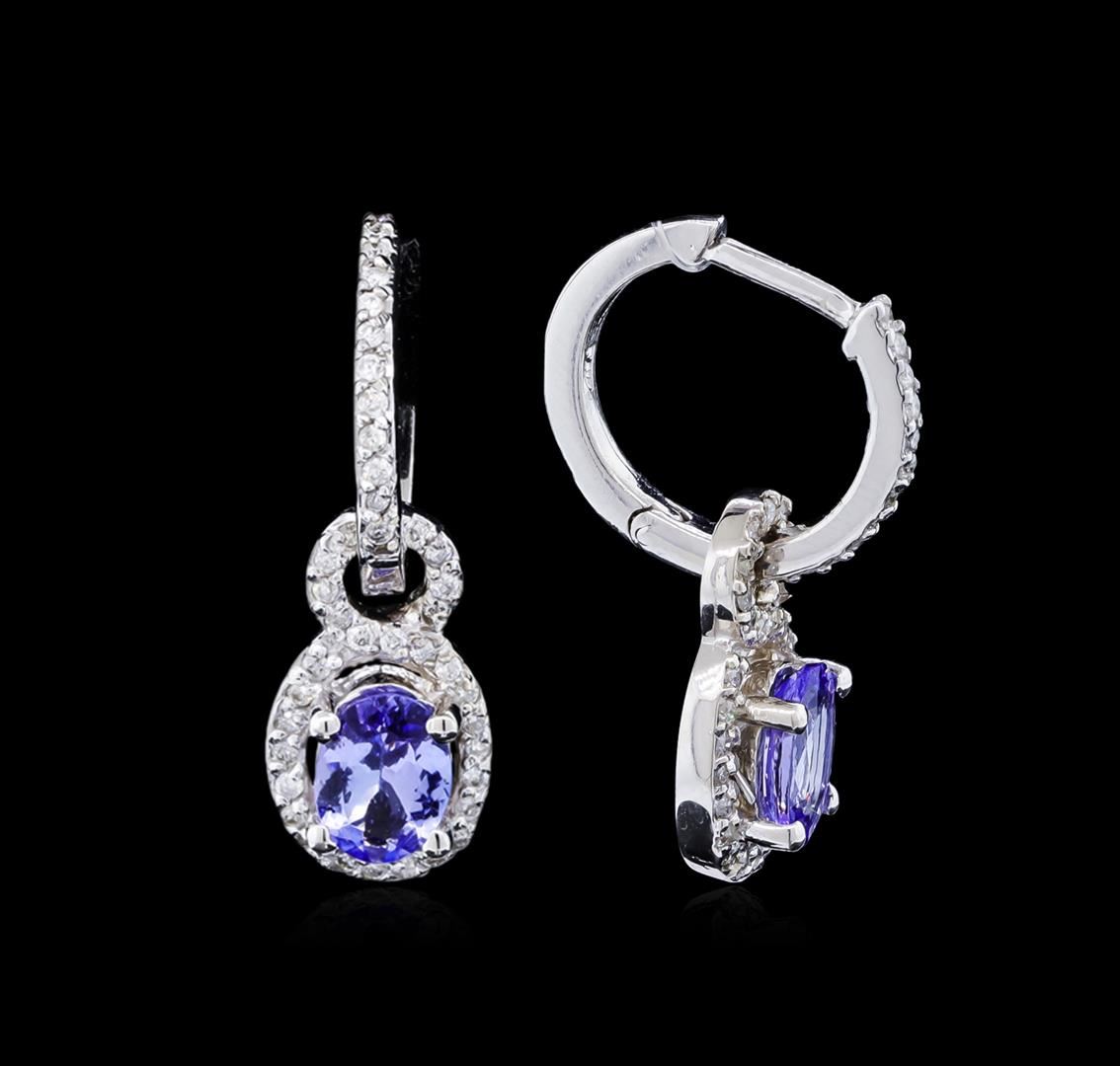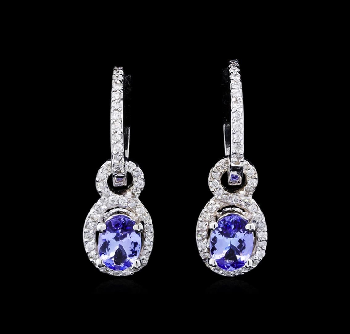 One pair of earrings featuring: 14KT white gold weighing 6.80 grams containing two tanzanites with a total weight of 1.37ct and diamonds with a total weight of 0.42ct.