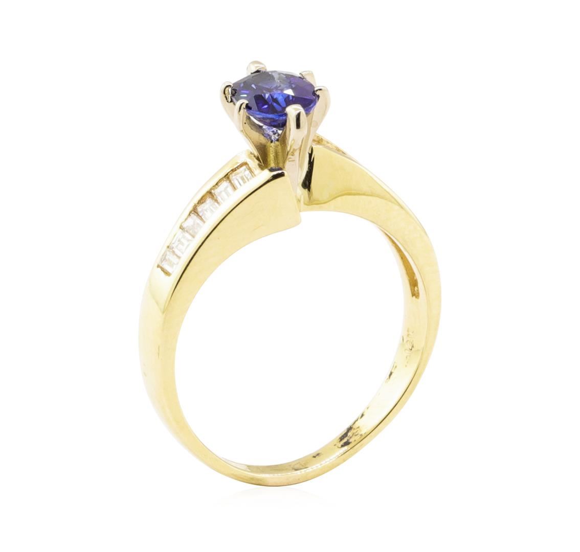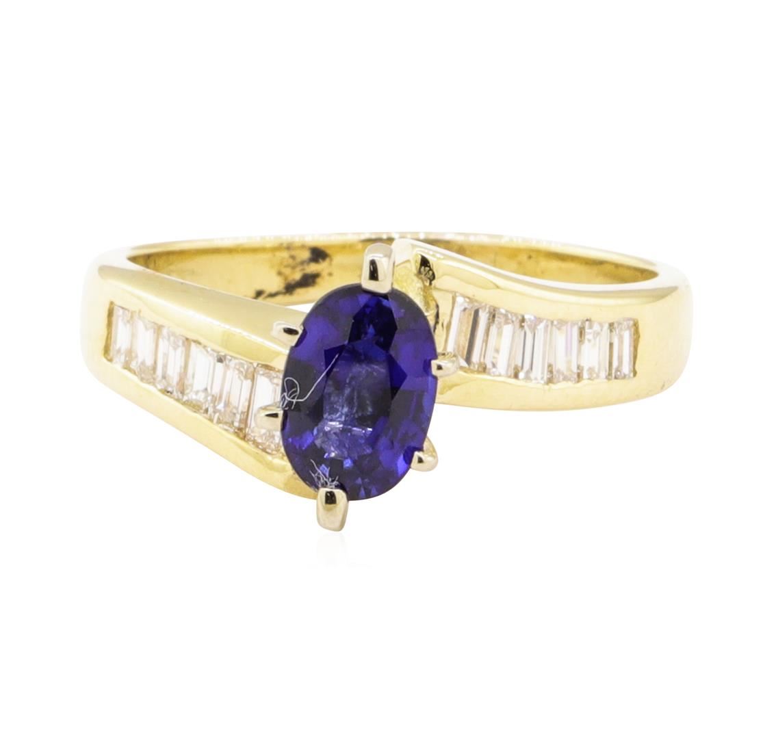 One ring featuring: 14KT yellow gold weighing 4.2 grams containing one blue sapphire weighing 0.88ct and diamonds weighing 0.50 ctw.