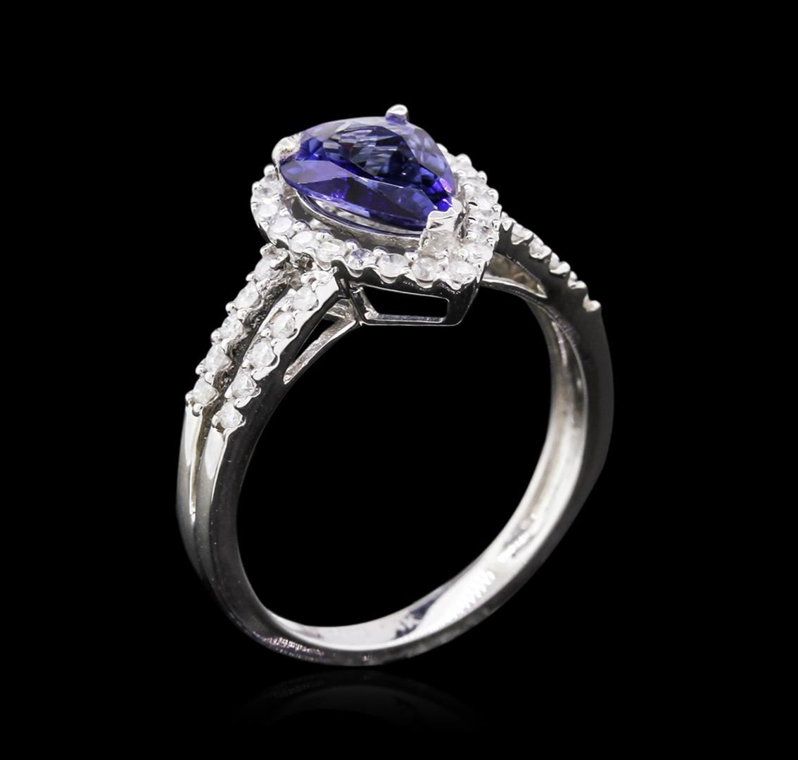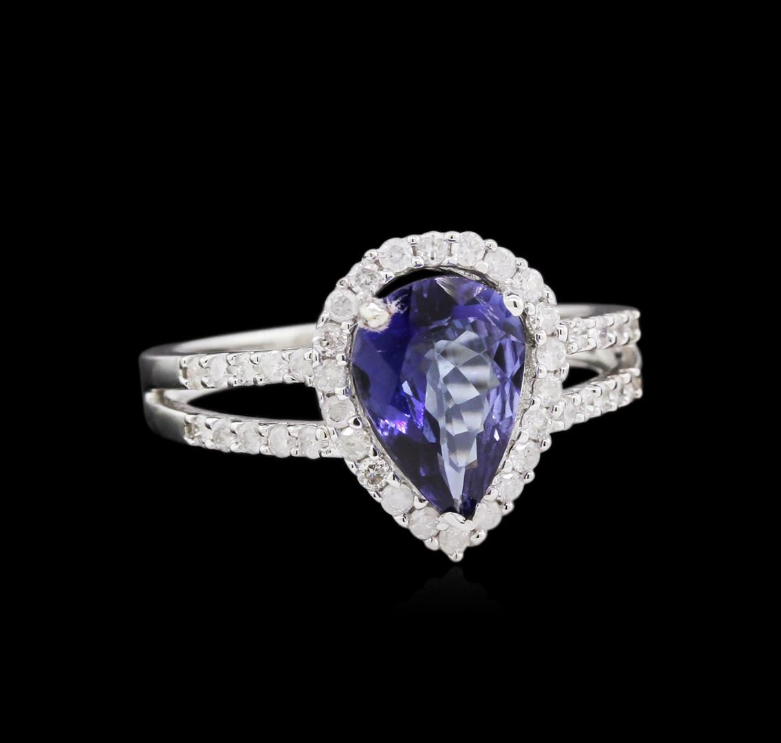 One electronically tested 14KT white gold ladies cast tanzanite and diamond ring with a bright polish finish. The featured tanzanite is set within a diamond bezel supported by diamond set split shoulders, completed by a two millimeter wide band. Trademark is Orianne. Identified with markings of "14K". Condition is new, good workmanship. Containing: One prong set pear mixed cut natural tanzanite, measuring 10.00 x 6.90 x 3.25mm, approximate weight of 1.38ct., clarity is eye clean, type I, dark, very slightly grayish, blue color, (GIA B 7/3), cut is good. Natural Tanzanite, color enhanced due to cobalt coating. The presence of the coating prevents determining the stone's actual depth of color. Transmitting light with no distortion, transparent. Grading in the setting. The cobalt coated Tanzanite has a low tolerance to ultrasonic cleaning, and should not be cleaned using this method. Tanzanite is a very rare gemstone that is only found in the country of Tanzania. Originally discovered in 1967. Tiffany & Company, named the stone Tanzanite. It is found in the Usumburu Mountains that border the Umba Valley of northern Tanzania. Tanzanite occurs in gray, brown, violet, blue, reddish-purple, & green. The gem is interesting because of its exceptional pleochroism. Rotated in different directions a tanzanite will exhibit multiple changes of color. Forty-Two prong set round brilliant cut diamonds, measuring 1.40 - 1.30 x 0.81mm (depth est.) approximate total weight of 42 Stones = 0.42ct. Graded in the setting. Clarity: I-2 to I-3. Color: G - I. Total Weight of Colored Stones 1.38ct. Total Weight of Diamonds 0.42ct. AIG Appraised at $2,100.00.