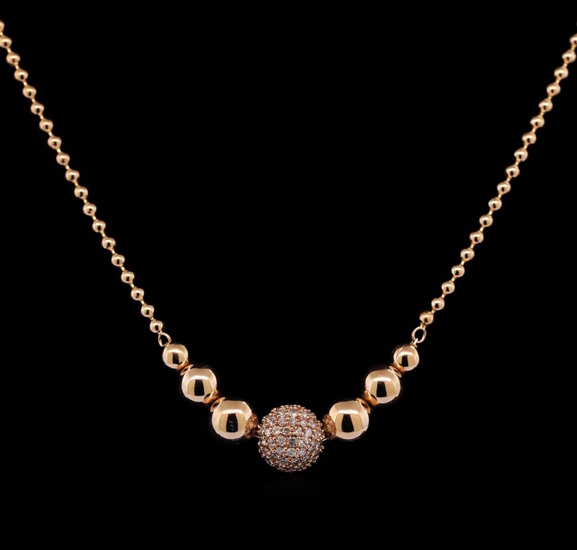 One electronically tested 14KT rose gold lady's combination cast & assembled fashion necklace with a lobster claw clasp with a bright polish finish. The featured lady's necklaces measures approximately 16.5 inches in length. Identified with markings of 'K14'. Condition is new, good workmanship. Containing: Thirty prong set round brilliant cut diamonds, measuring 1.75 - 1.65 x 1.02mm (depth est.) approximate total weight of 30 Stones = 0.54ct. Graded in the setting. Clarity SI-1 to SI-2. Color: H - I Cut Good Thirty prong set round brilliant cut diamonds, measuring 1.60 - 1.55 x 0.98mm (depth est.) approximate total weight of 30 Stones = 0.45ct. Graded in the setting. Clarity SI-1 to SI-2. Color: H - I Cut Good Forty prong set round brilliant cut diamonds, measuring 1.40 - 1.35 x 0.86mm (depth est.) approximate total weight of 40 Stones = 0.41ct. Graded in the setting. Clarity SI-1 to SI-2. Color: H - I Cut Good. Total Weight of Diamonds 1.40ct.. Total Weight of Necklace 16.20gm. GAS Appraised at $6,545.00.