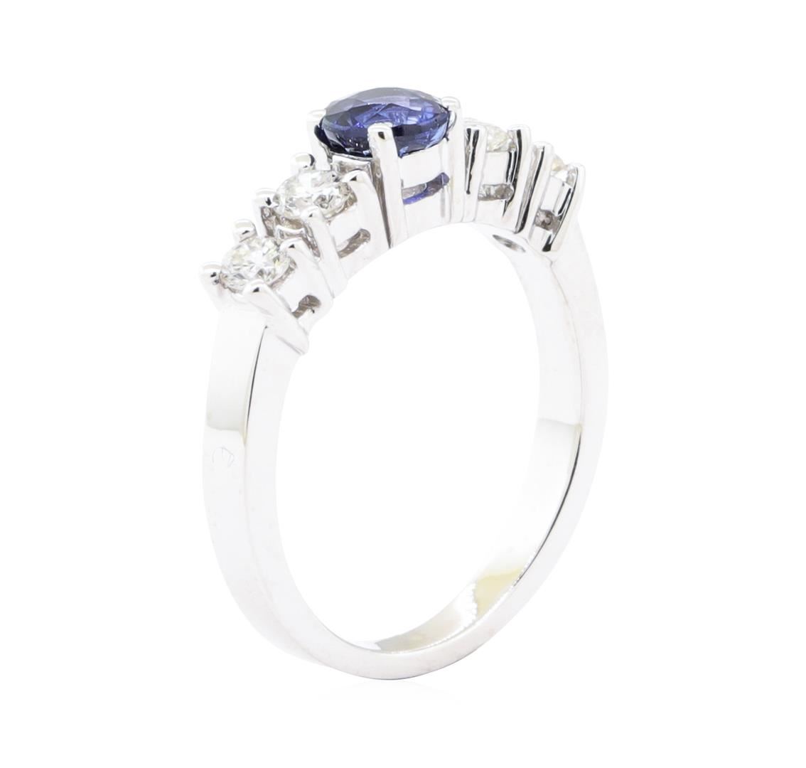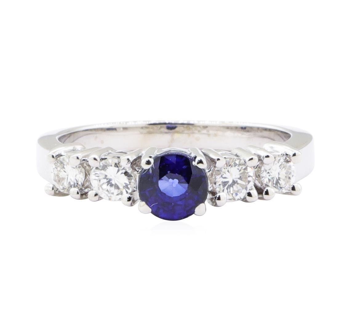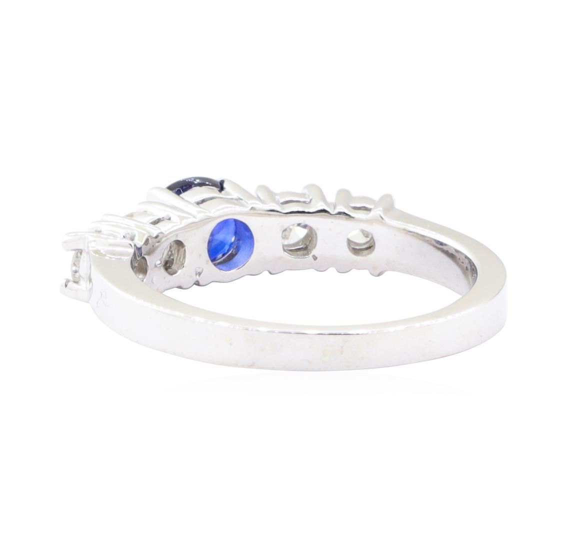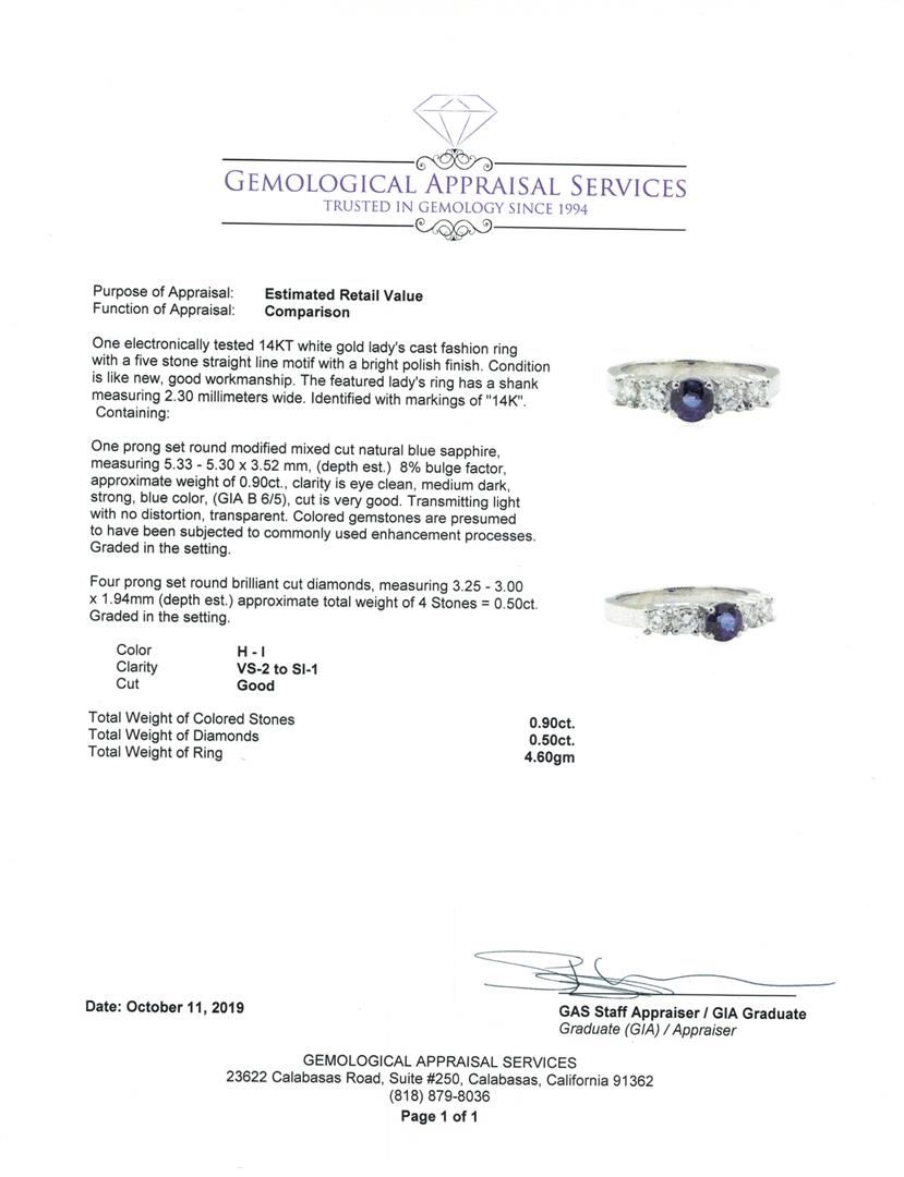 One electronically tested 14KT white gold lady's cast fashion ring with a five stone straight line motif with a bright polish finish. The featured lady's ring has a shank measuring 2.30 millimeters wide. Identified with markings of '14K'. Condition is Goo
