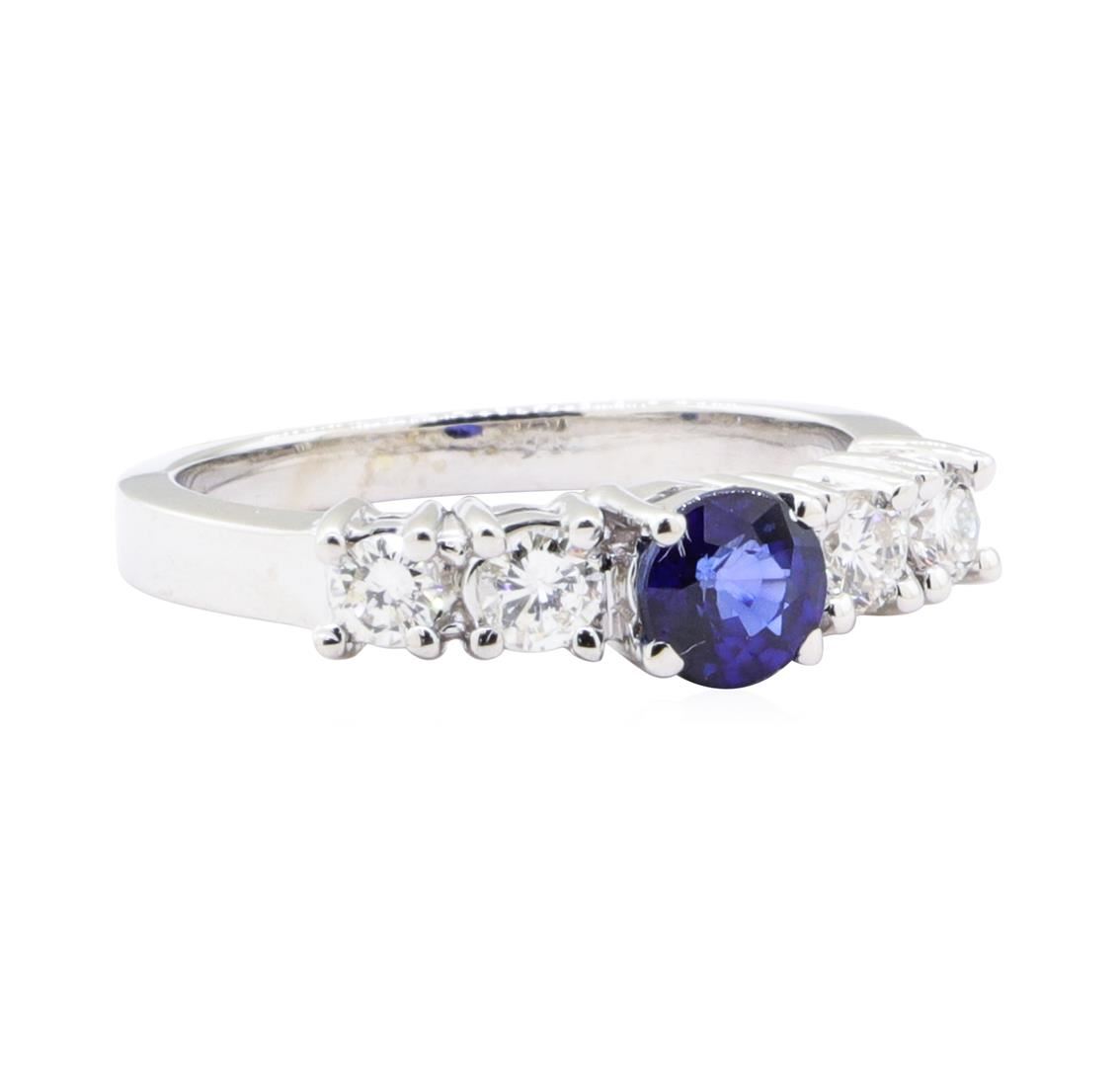 One electronically tested 14KT white gold lady's cast fashion ring with a five stone straight line motif with a bright polish finish. The featured lady's ring has a shank measuring 2.30 millimeters wide. Identified with markings of '14K'. Condition is Goo