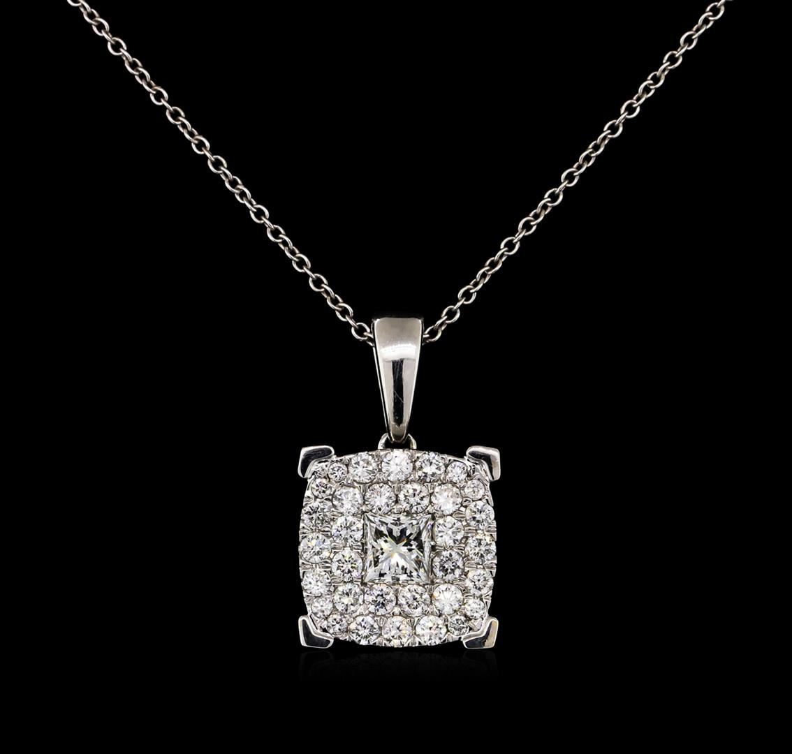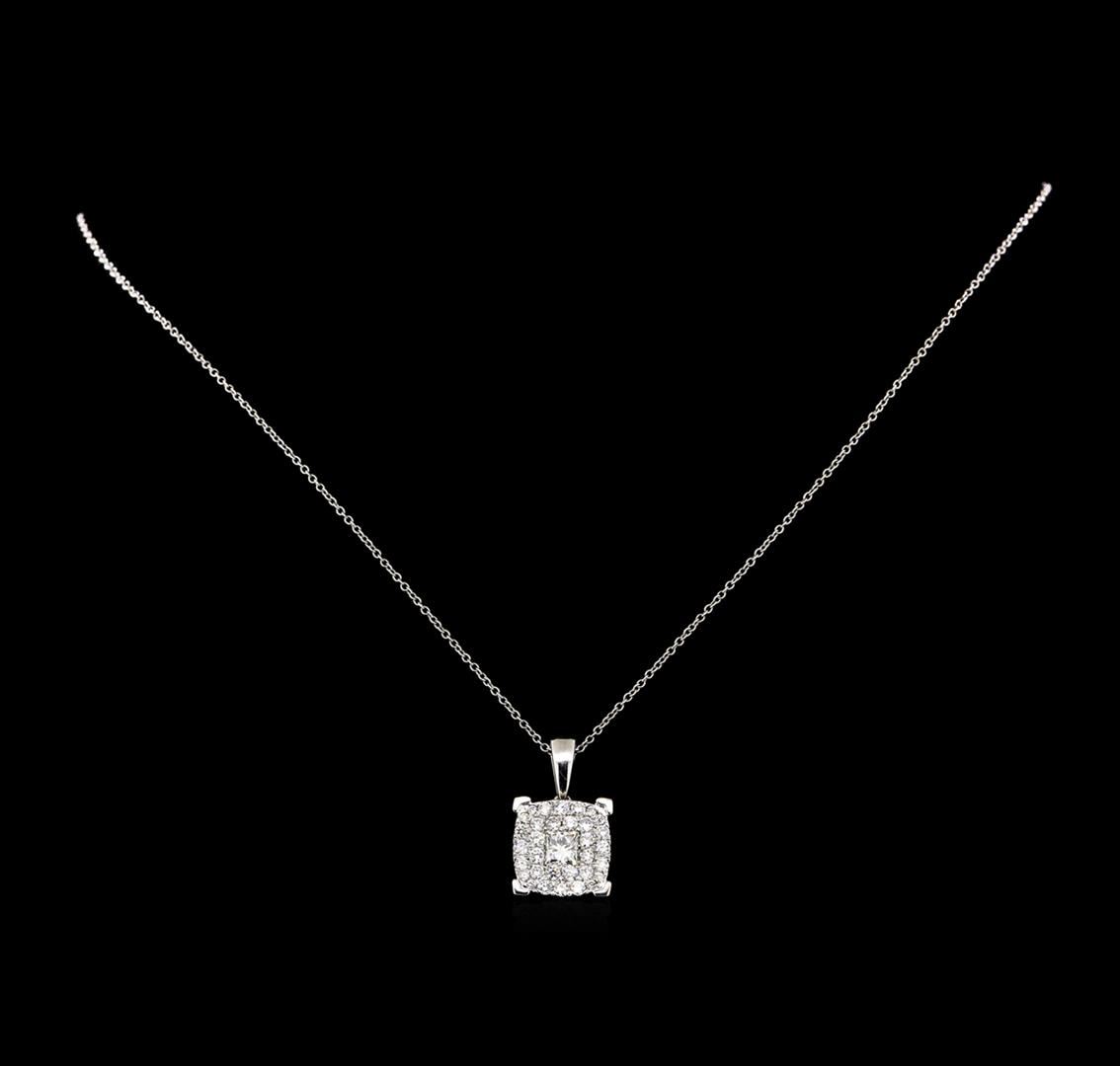 One pendant with chain featuring: 18KT white gold weighing 3.59 grams containing diamonds with a total weight of 1.40ct.