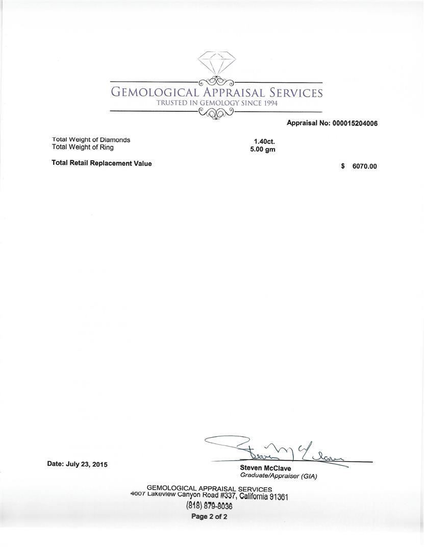 Regarding Appraised Jewelry, Watches and Loose Stones –